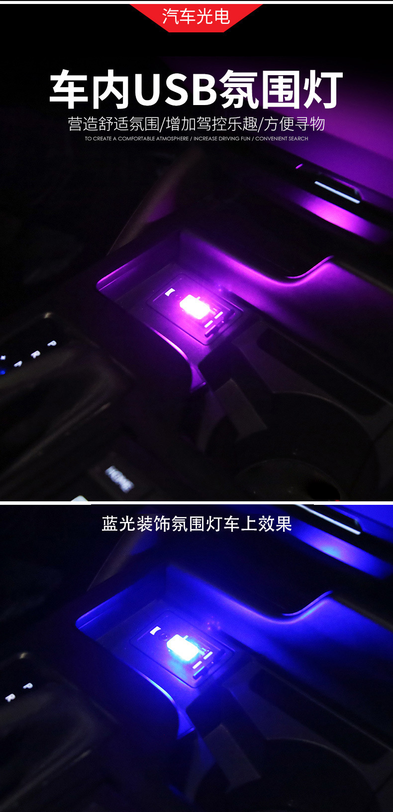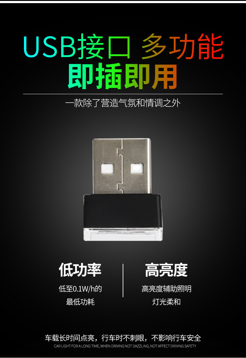 소스 국경 전용 자동차 USB 헤드 램프 아크릴 대비 컬러 자동차 USB 분위기 야간 조명 장식 조명스토어 가기