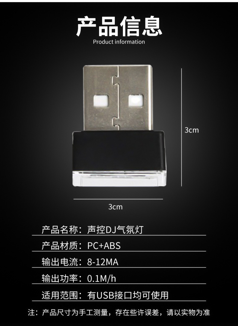 소스 국경 전용 자동차 USB 헤드 램프 아크릴 대비 컬러 자동차 USB 분위기 야간 조명 장식 조명