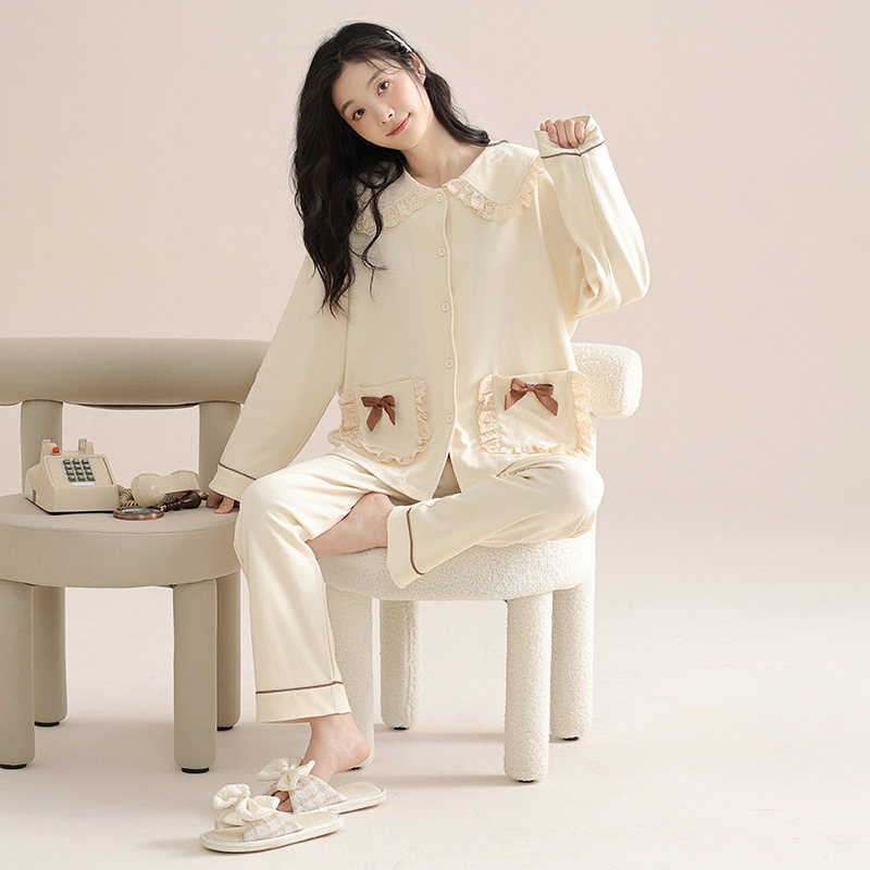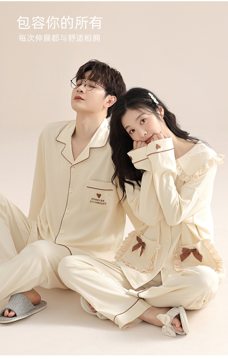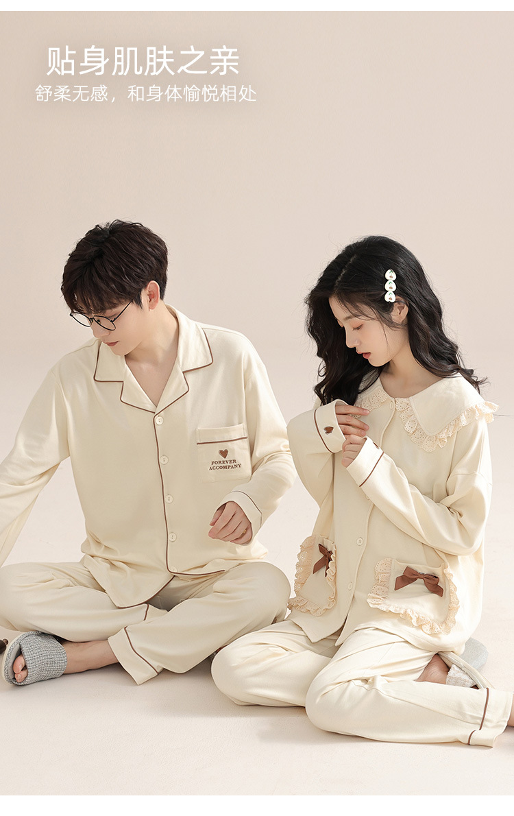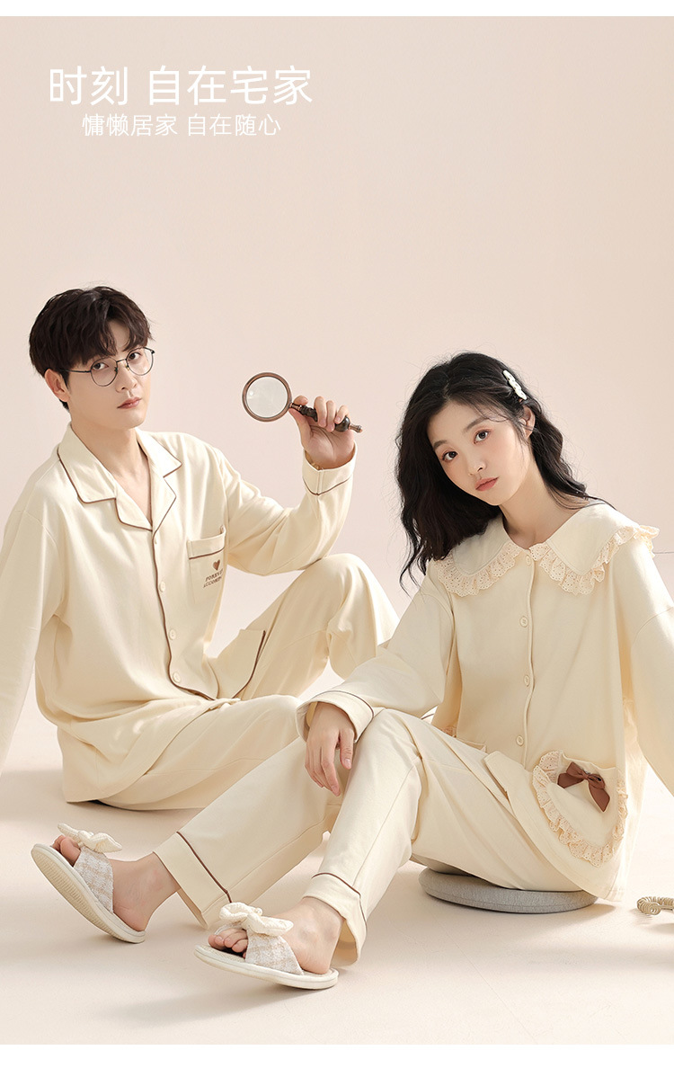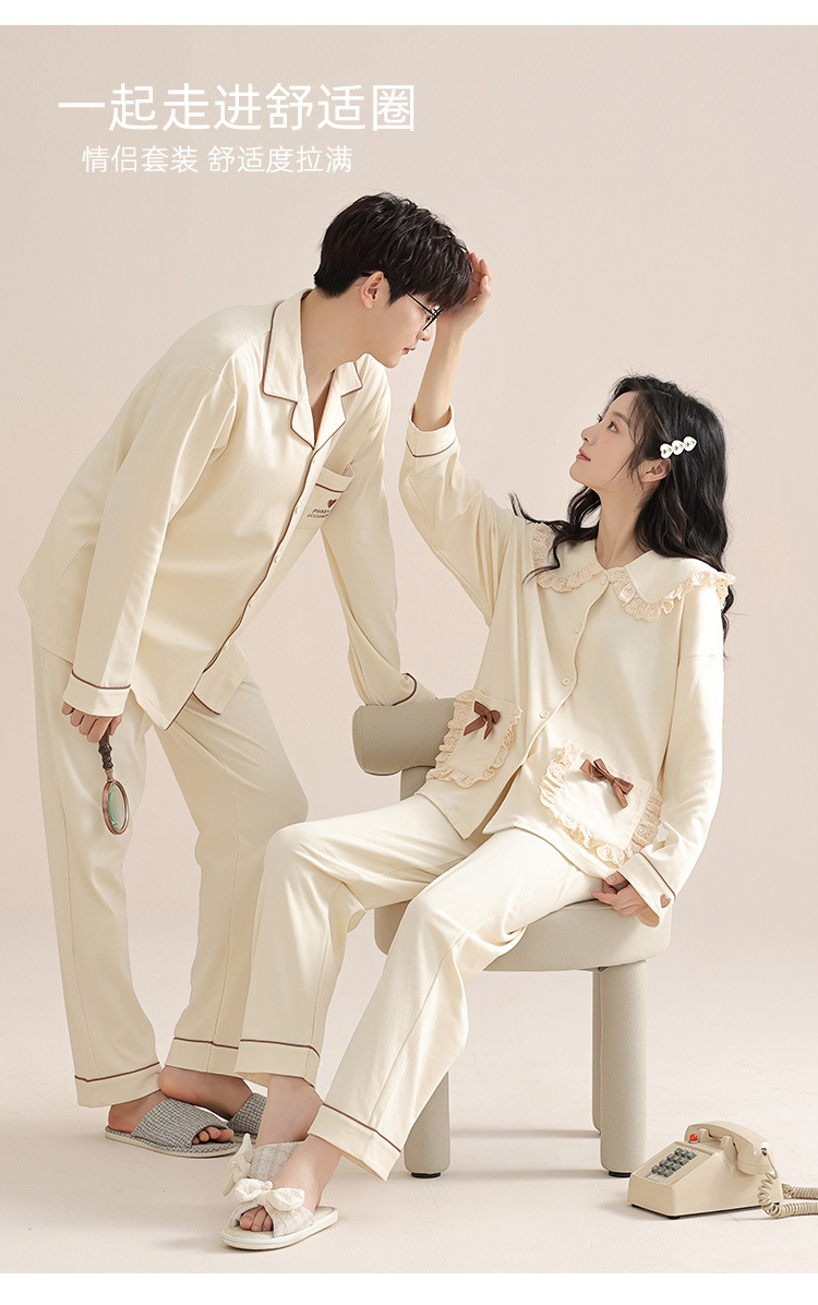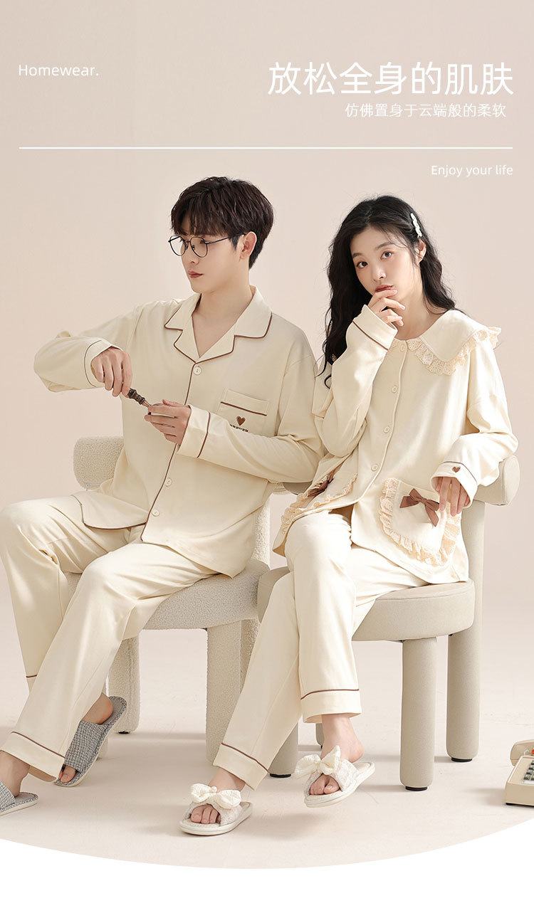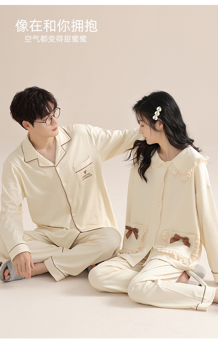 봄과 가을 커플 잠옷 순면 긴팔 여성 귀여운 홈웨어 2025 신상 가을 겨울 남성 세트