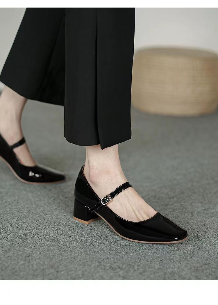 플러스 사이즈 메리 제인 신발 인기있는 여름 새로운 스타일의 청키 발 뒤꿈치 복고풍 사각형 발가락 여성 신발 유행 기질 미드 힐 간단한 싱글 레이어 신발