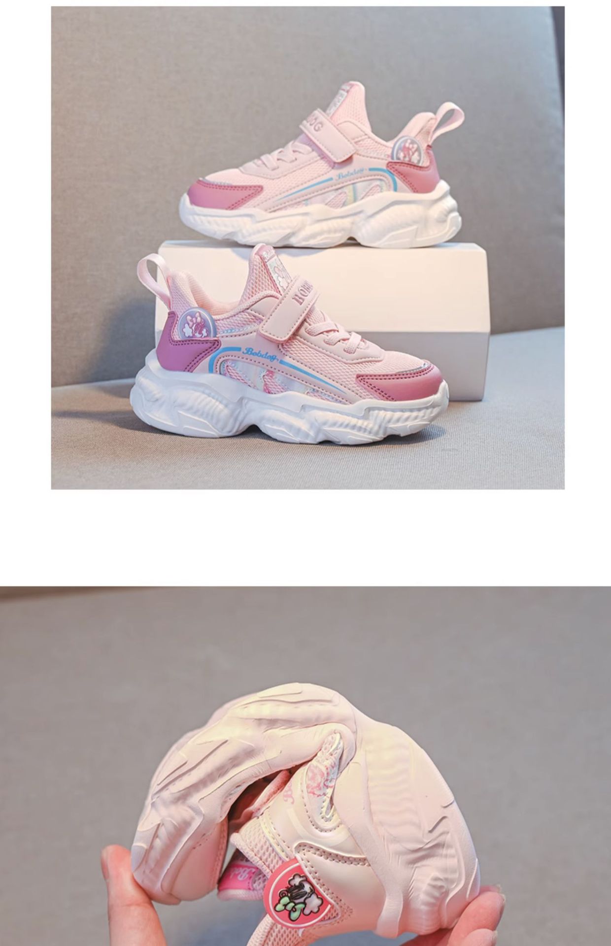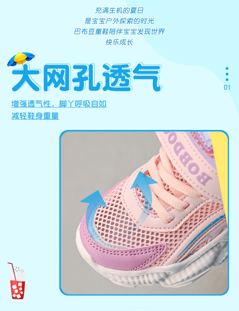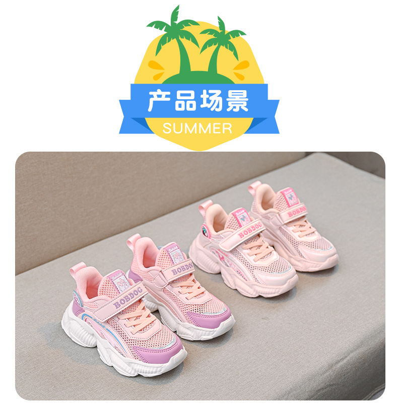 Babdou 소녀 신발 2024 새 소녀면 패딩 신발 어린이 학생 경량 메쉬 운동화 봄과 가을 겨울