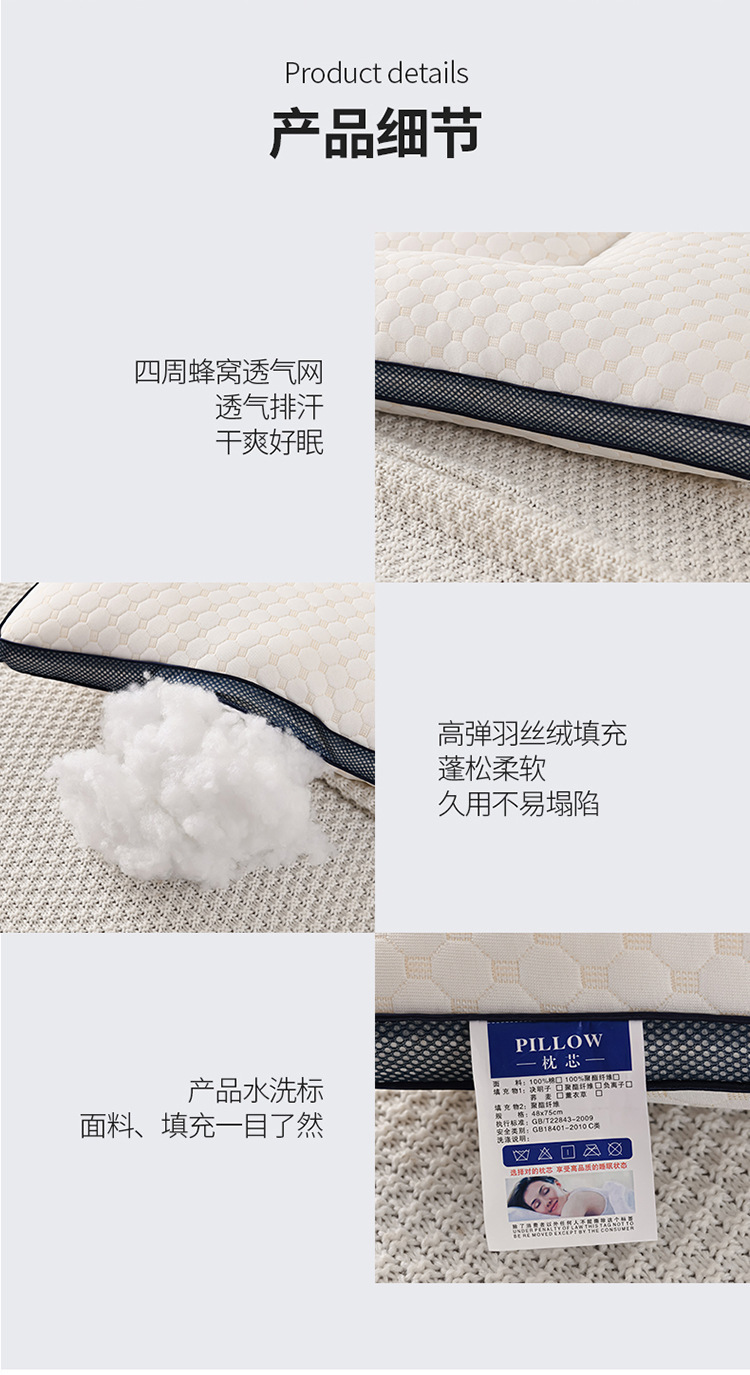공장 직판 압력방지 피부친화 통기성 경추보호 수면보조 성인용 베개 쌍 3D