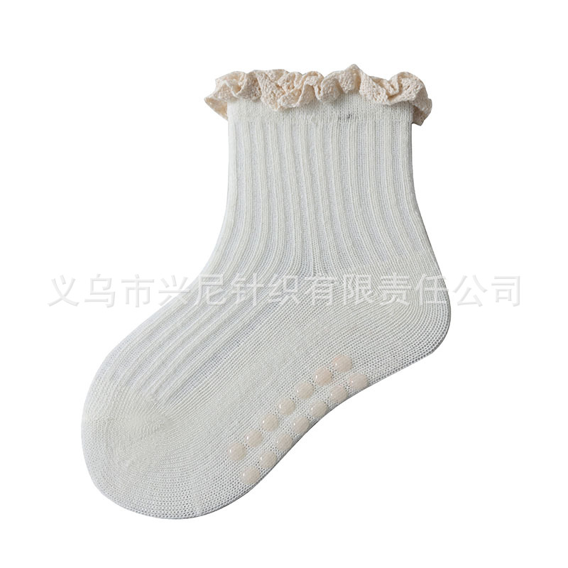 신생아 분배 비 슬립 봄과 가을면 양말 유아 0-6 개월 소녀 공주 레이스 양말 아기 바닥 양말