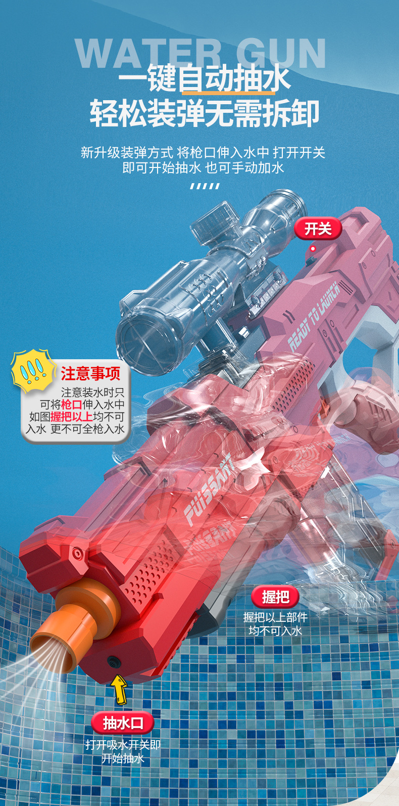 • [레드] 자동 물 흡수 전기 물총