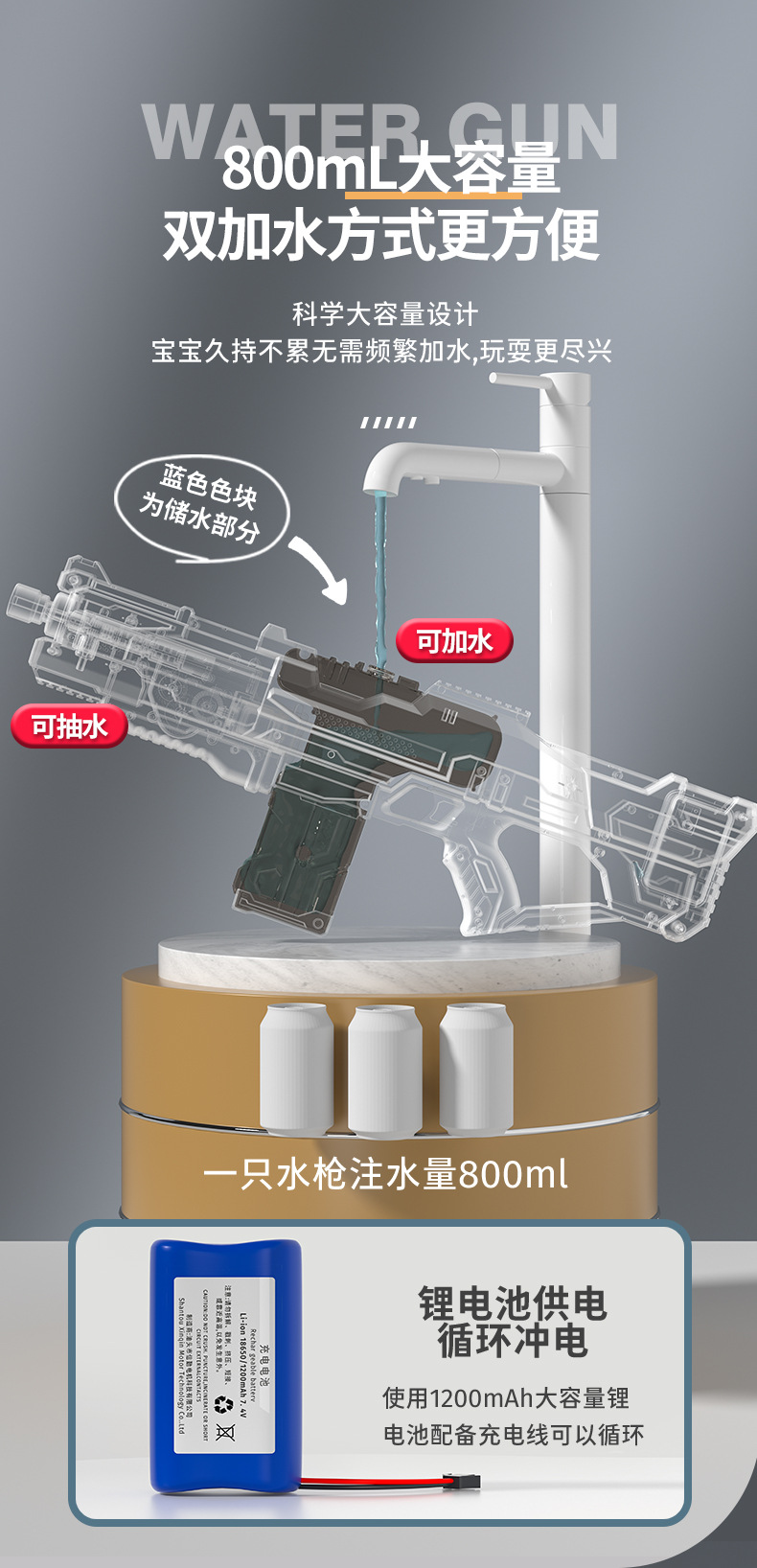• 영어 컬러 박스 블루 자기 흡수 전기 물총 (280ML)
