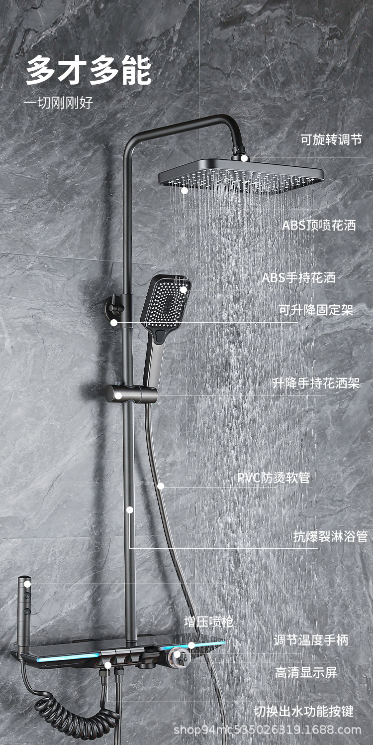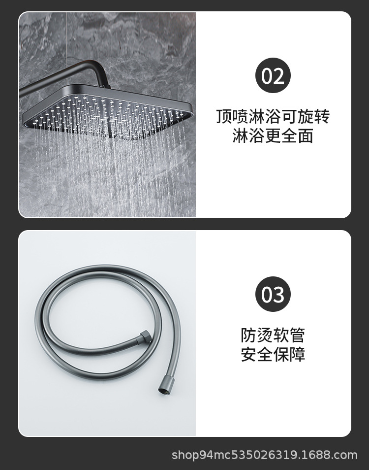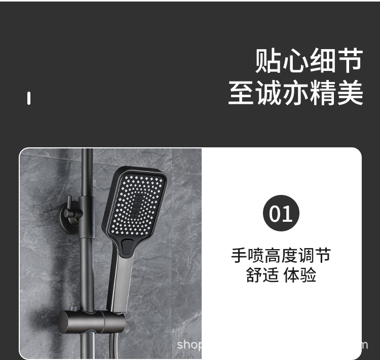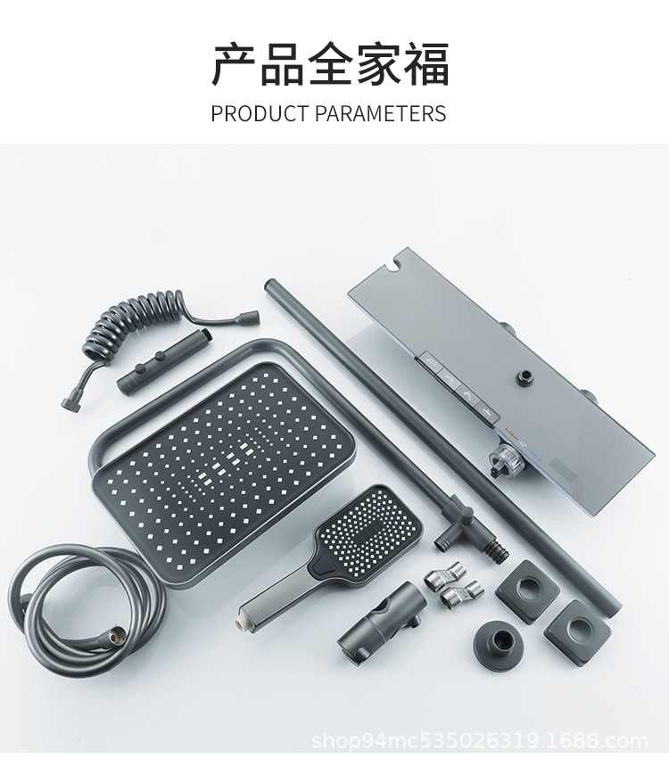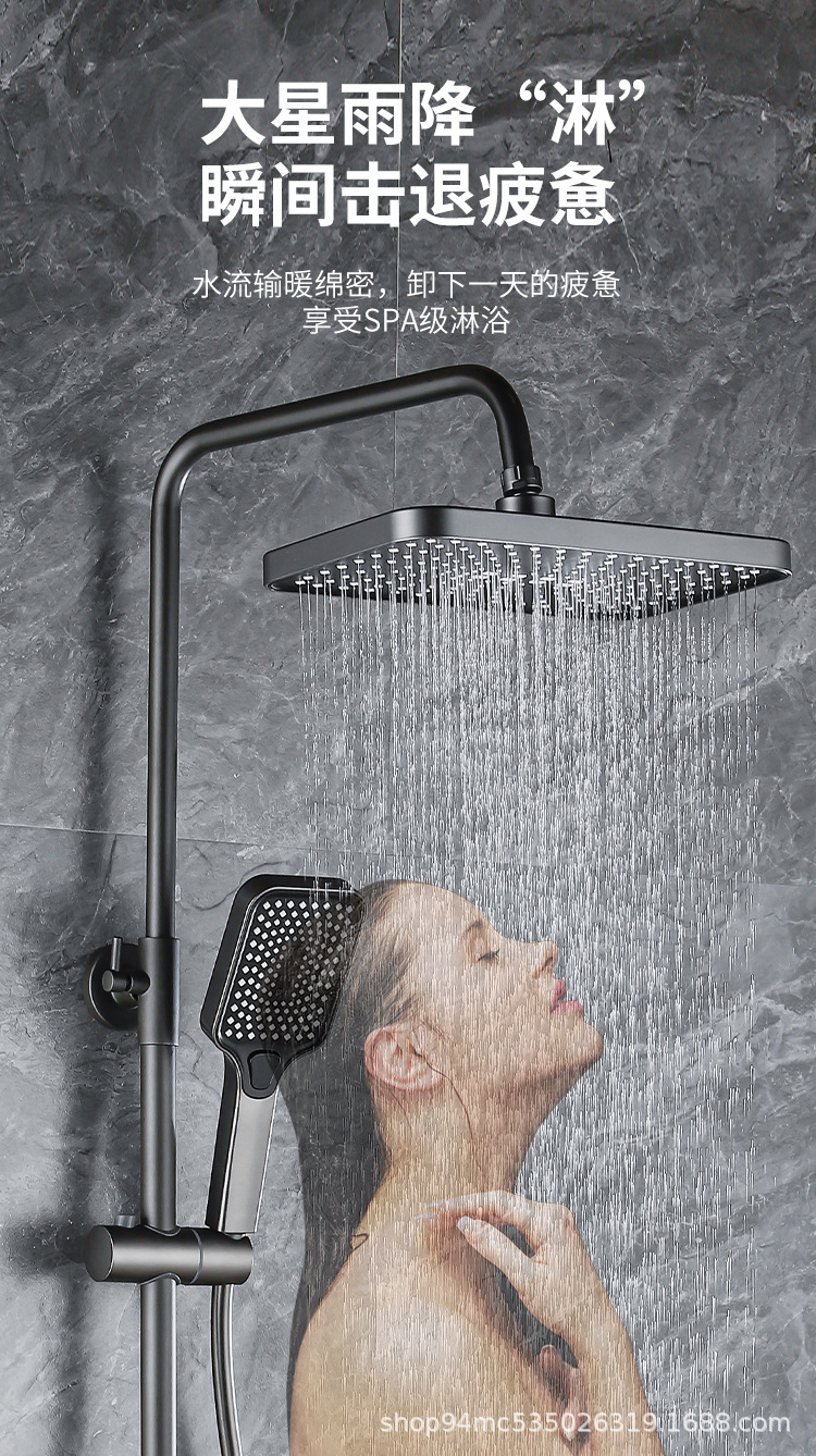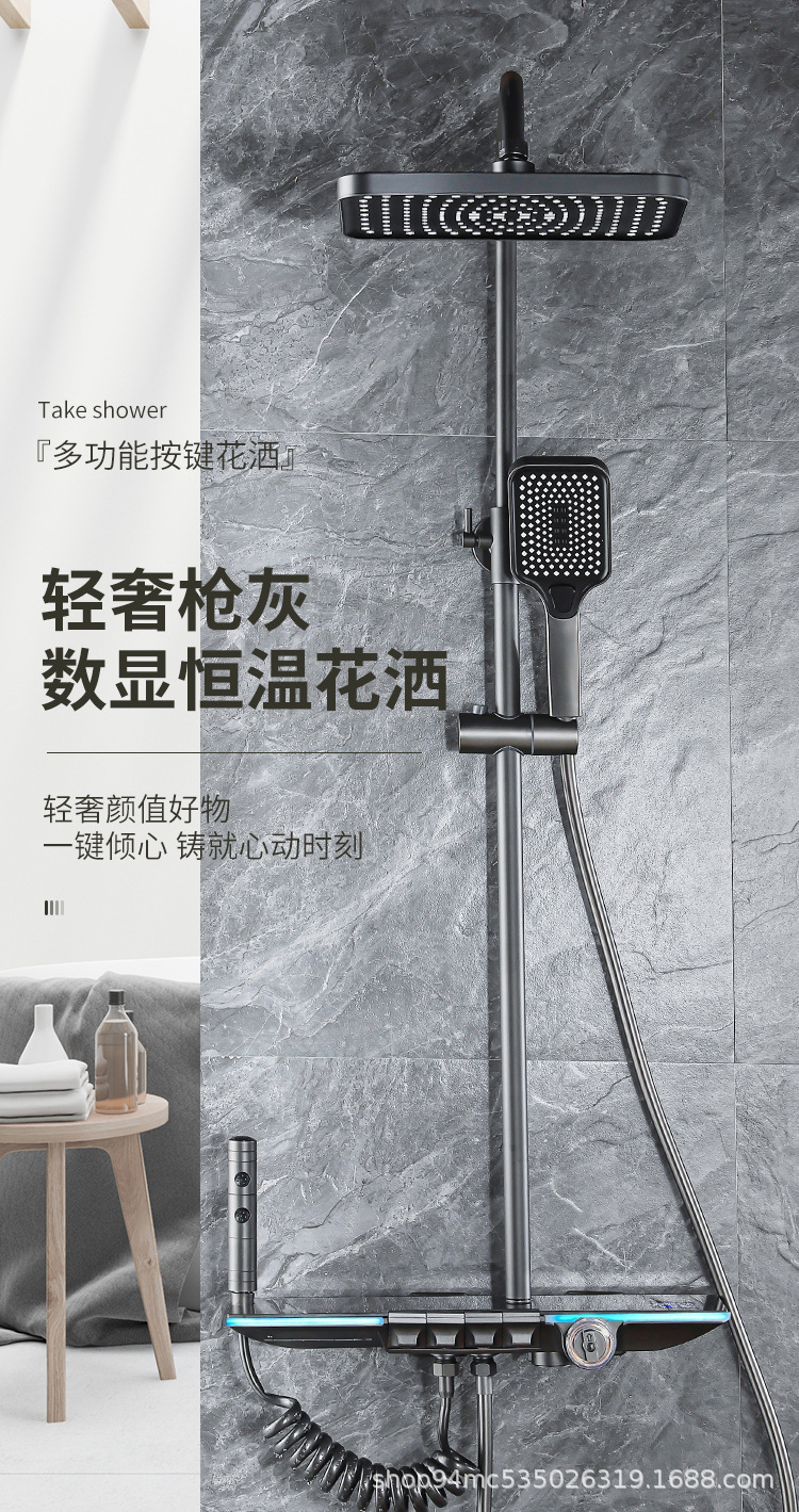 플라스틱 강철 샤워 헤드 세트 가정용 일정한 온도 샤워 비 욕실 압력 샤워 노즐 총 회색 욕실 꽃 건조스토어 가기