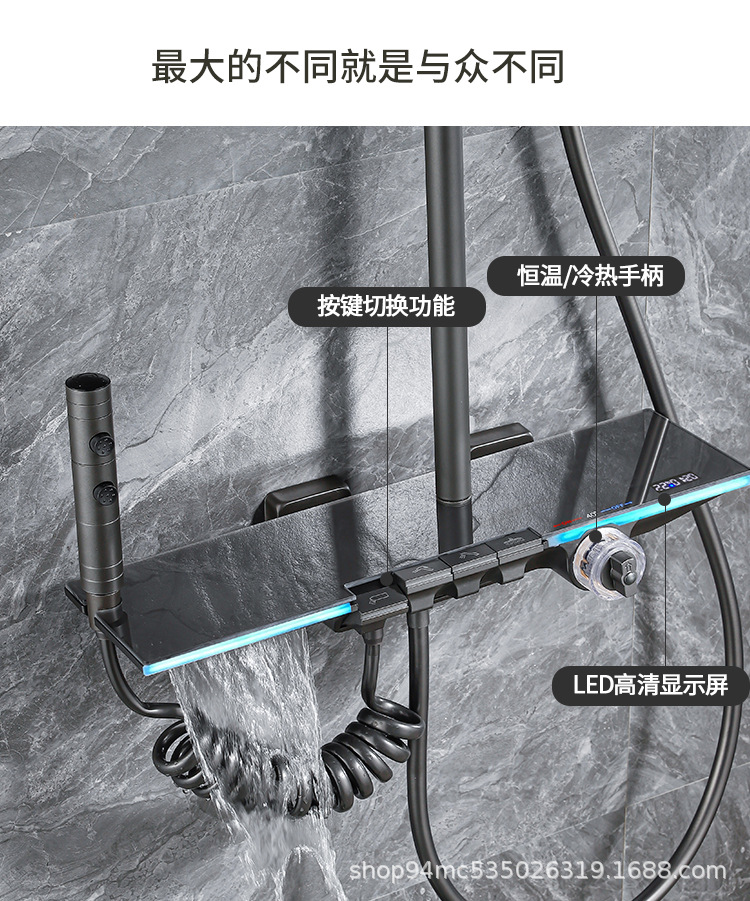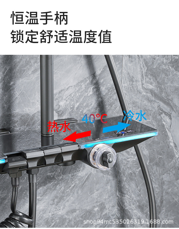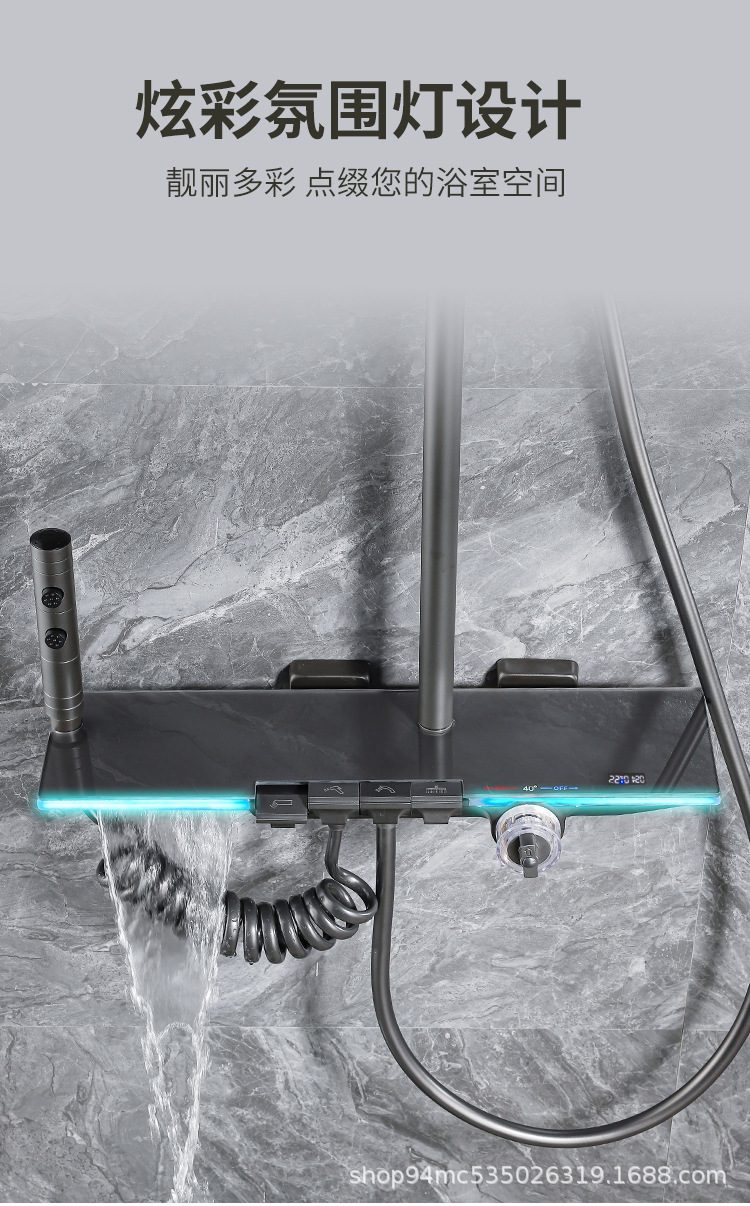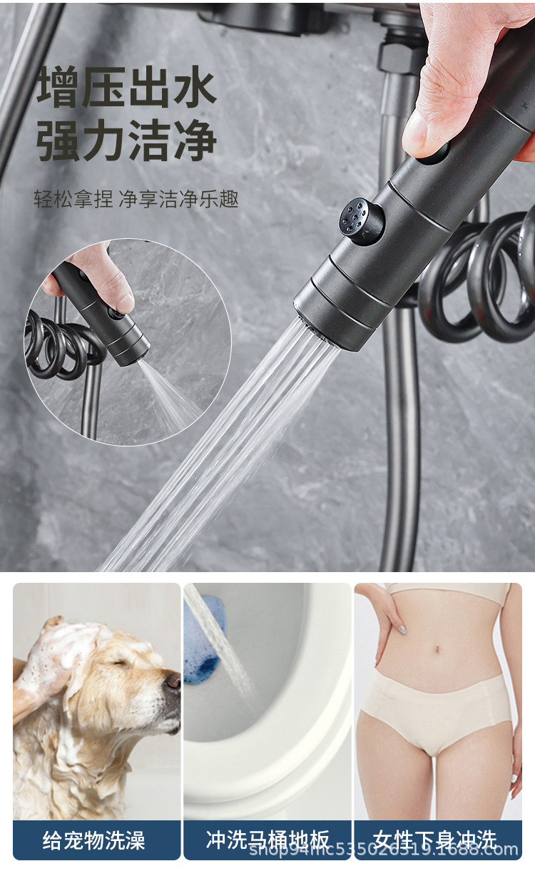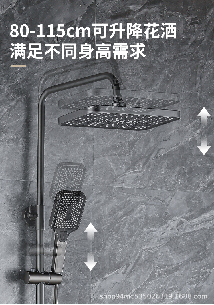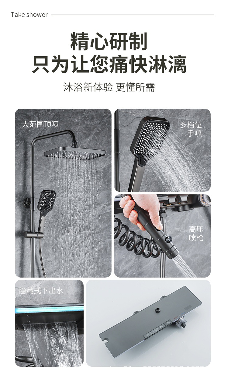 플라스틱 강철 샤워 헤드 세트 가정용 일정한 온도 샤워 비 욕실 압력 샤워 노즐 총 회색 욕실 꽃 건조스토어 가기