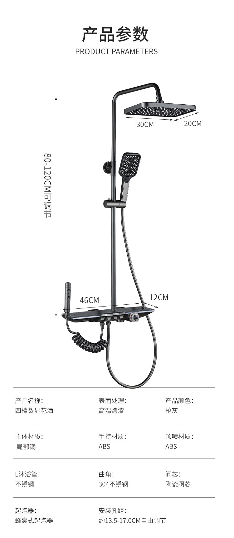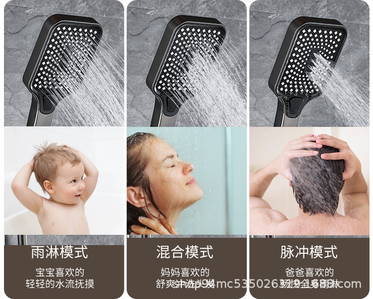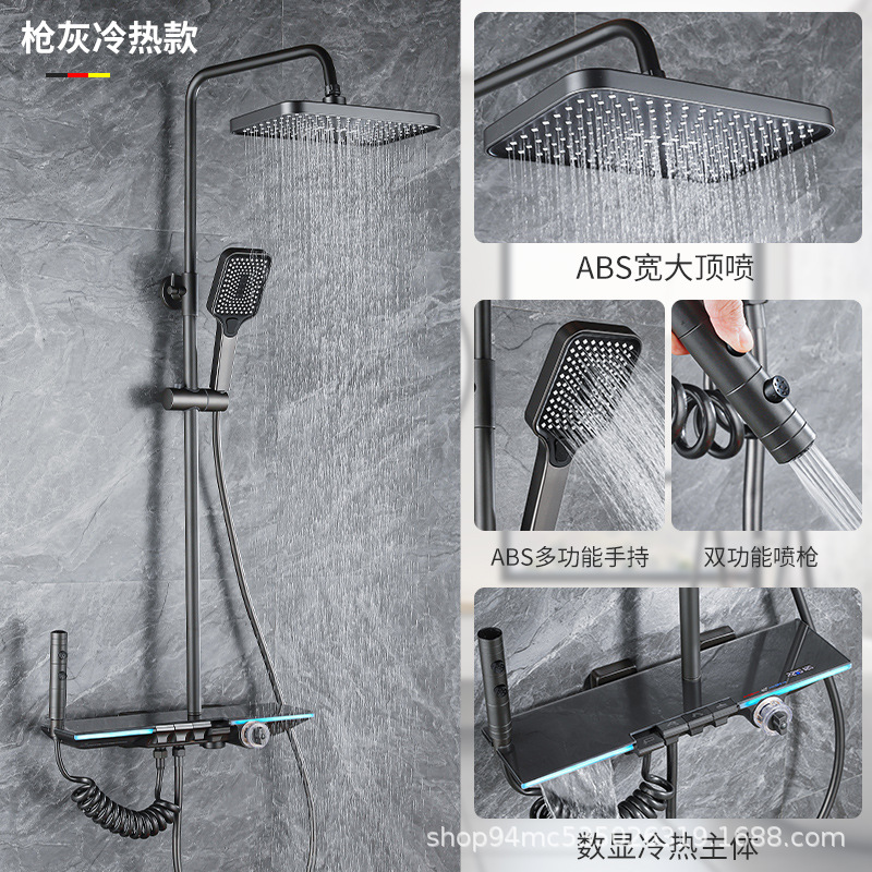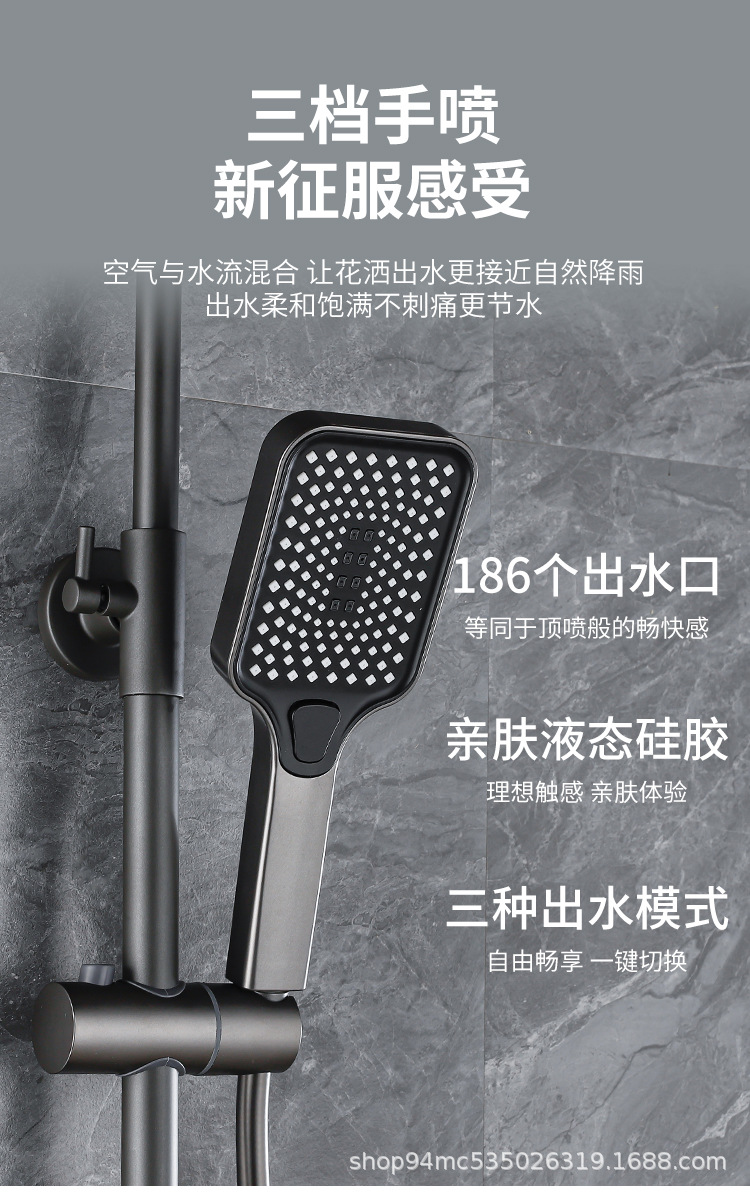 플라스틱 강철 샤워 헤드 세트 가정용 일정한 온도 샤워 비 욕실 압력 샤워 노즐 총 회색 욕실 꽃 건조