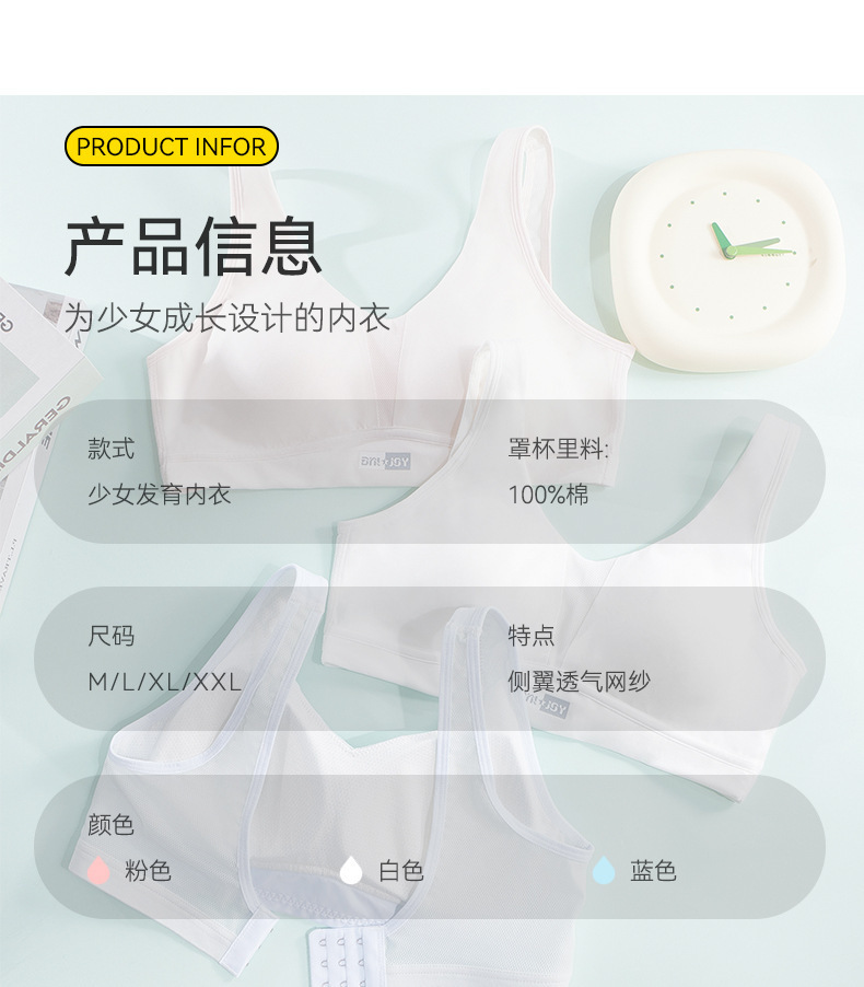 안페이야 소녀 브래지어 스포츠 편안한 뒤로 버튼 컵 봄 소녀 학생 속옷 큰 가슴 작은스토어 가기