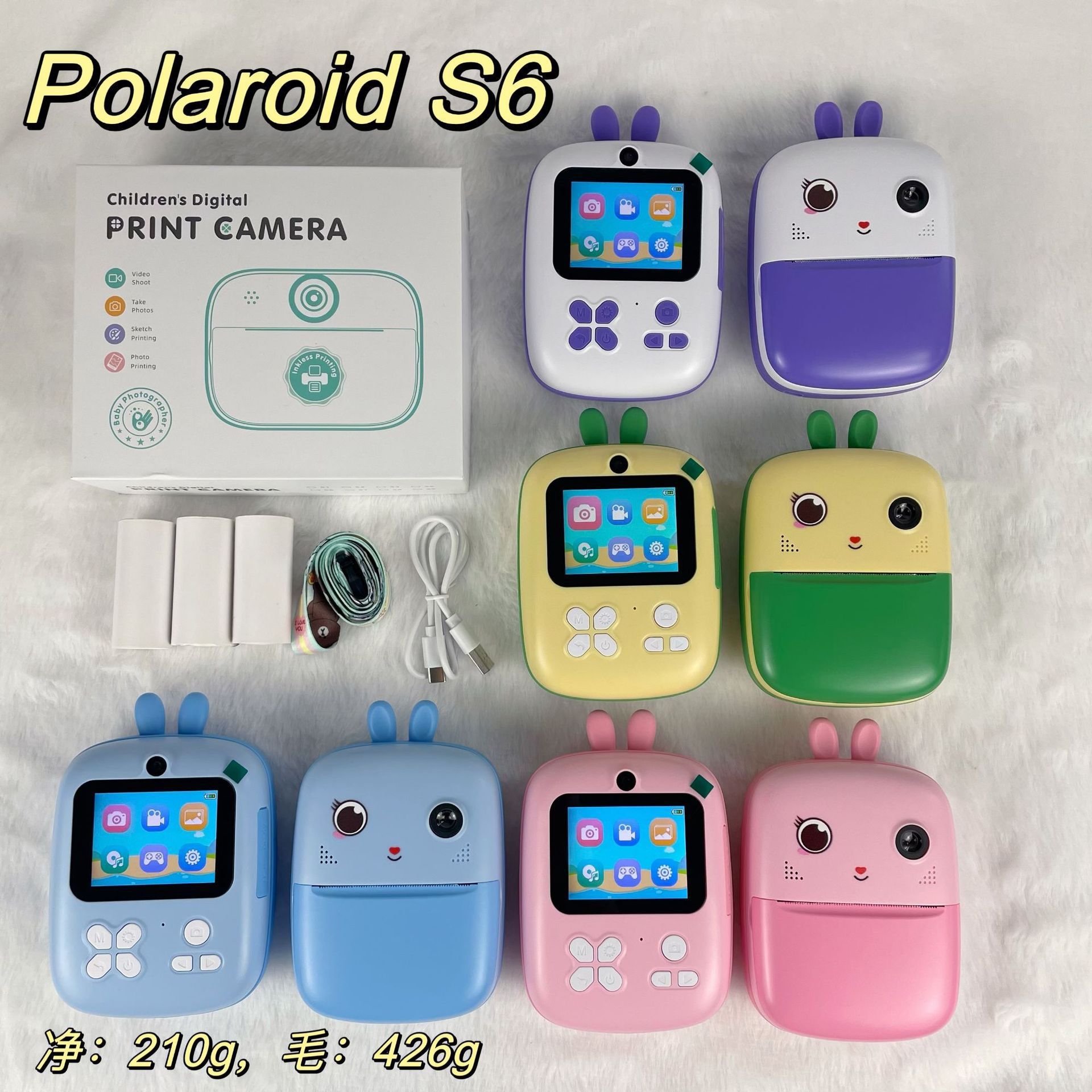 국경 간 S6 어린이 폴라로이드 카메라 만화 재미있는 생일 장난감 지능형 HD 인스턴트 촬영 및 인쇄 카메라스토어 가기