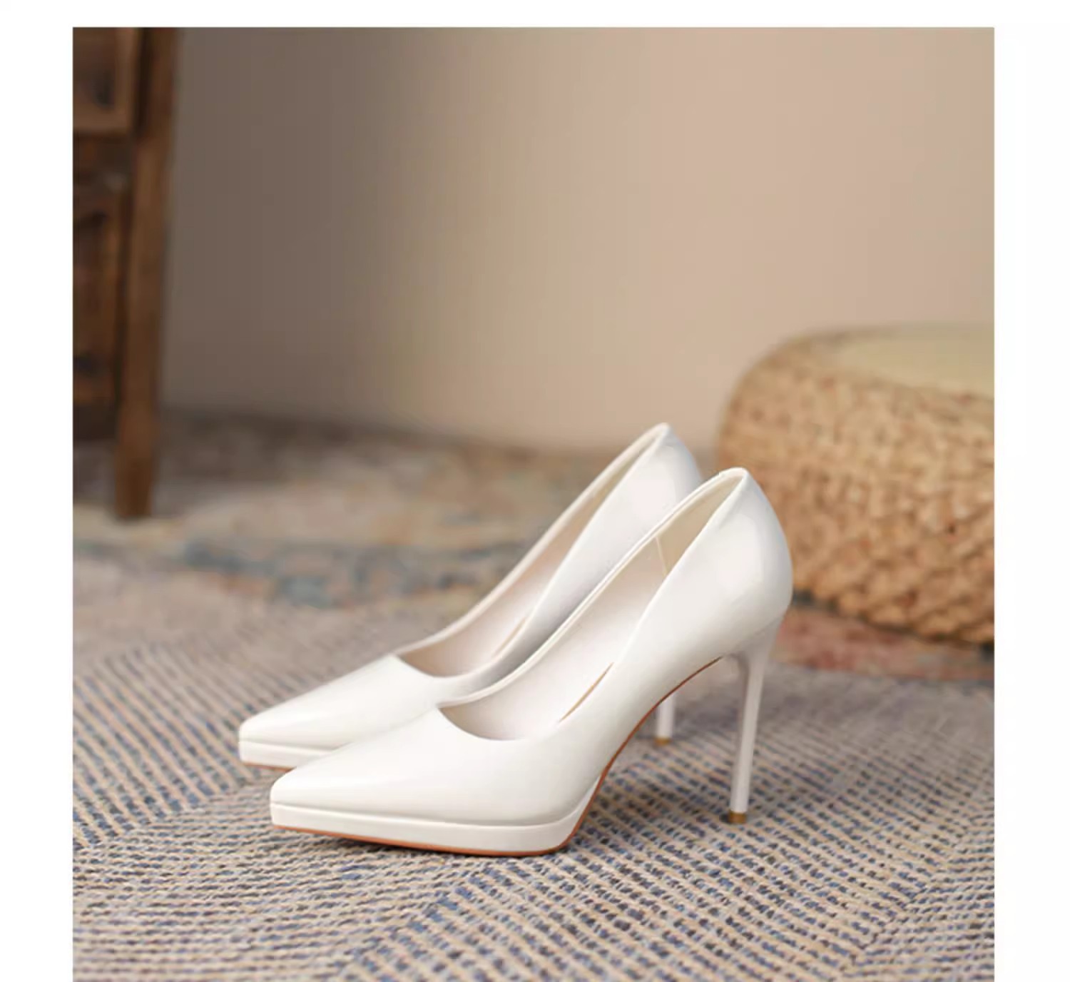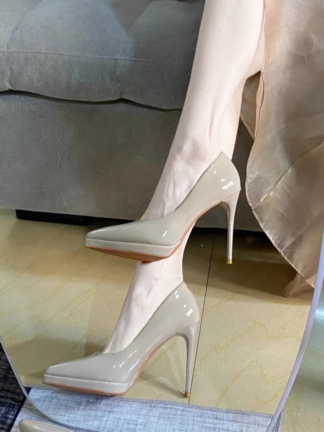 봄과 여름 2023 여성을위한 방수 플랫폼 하이힐 새로운 뾰족한 스틸레토 힐 누드 특허 가죽 섹시한 에티켓 패션 싱글 레이어 신발스토어 가기