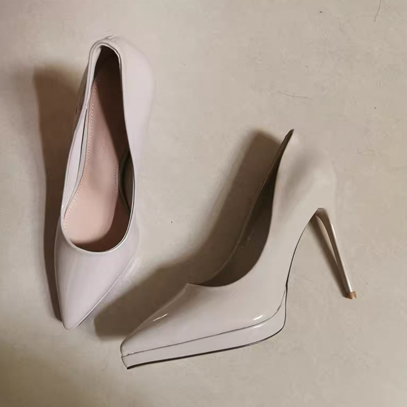 봄과 여름 2023 여성을위한 방수 플랫폼 하이힐 새로운 뾰족한 스틸레토 힐 누드 특허 가죽 섹시한 에티켓 패션 싱글 레이어 신발