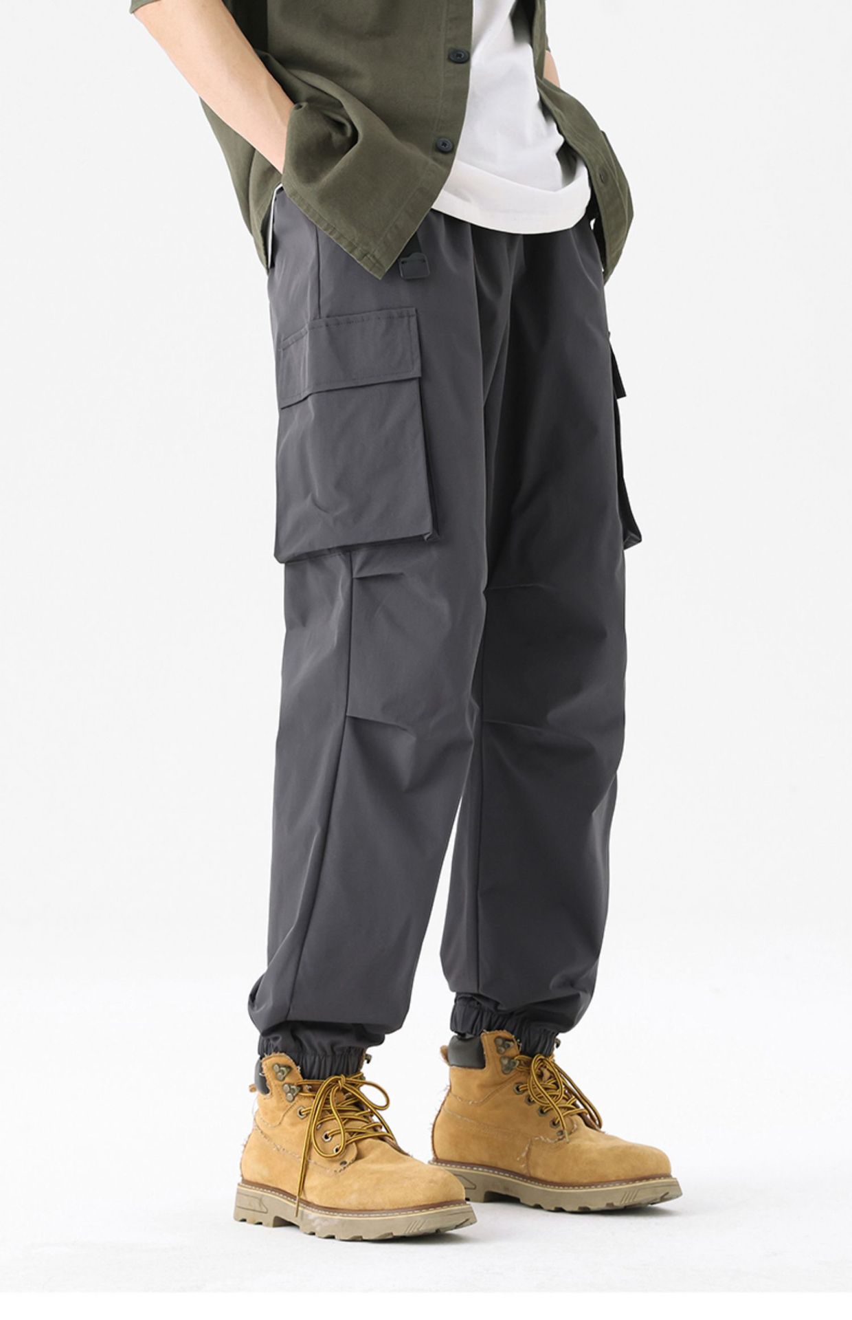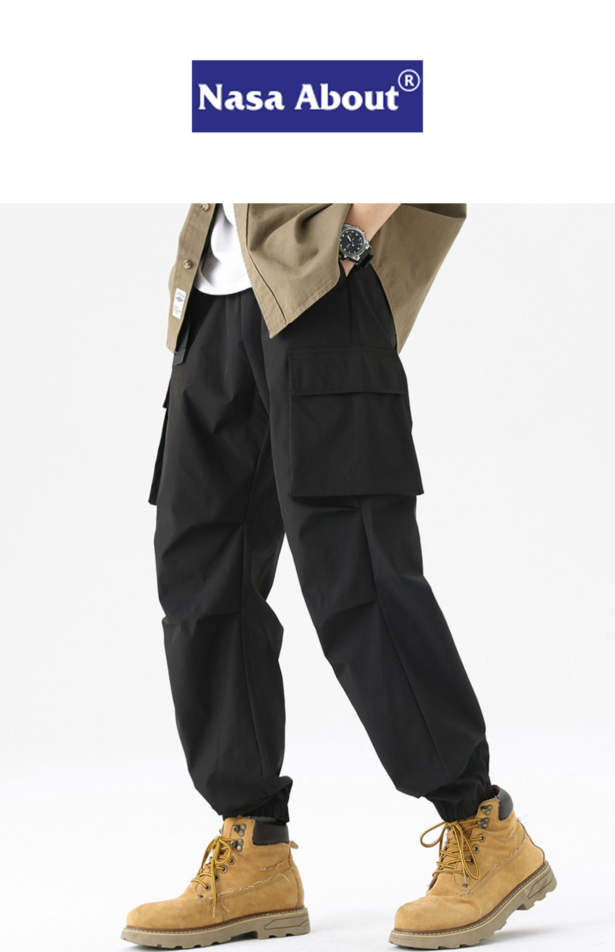NASA American 작업복 남자 봄 2024 새로운 느슨한 발목 묶인 봄과 가을 바지 기능성 등산 바지스토어 가기