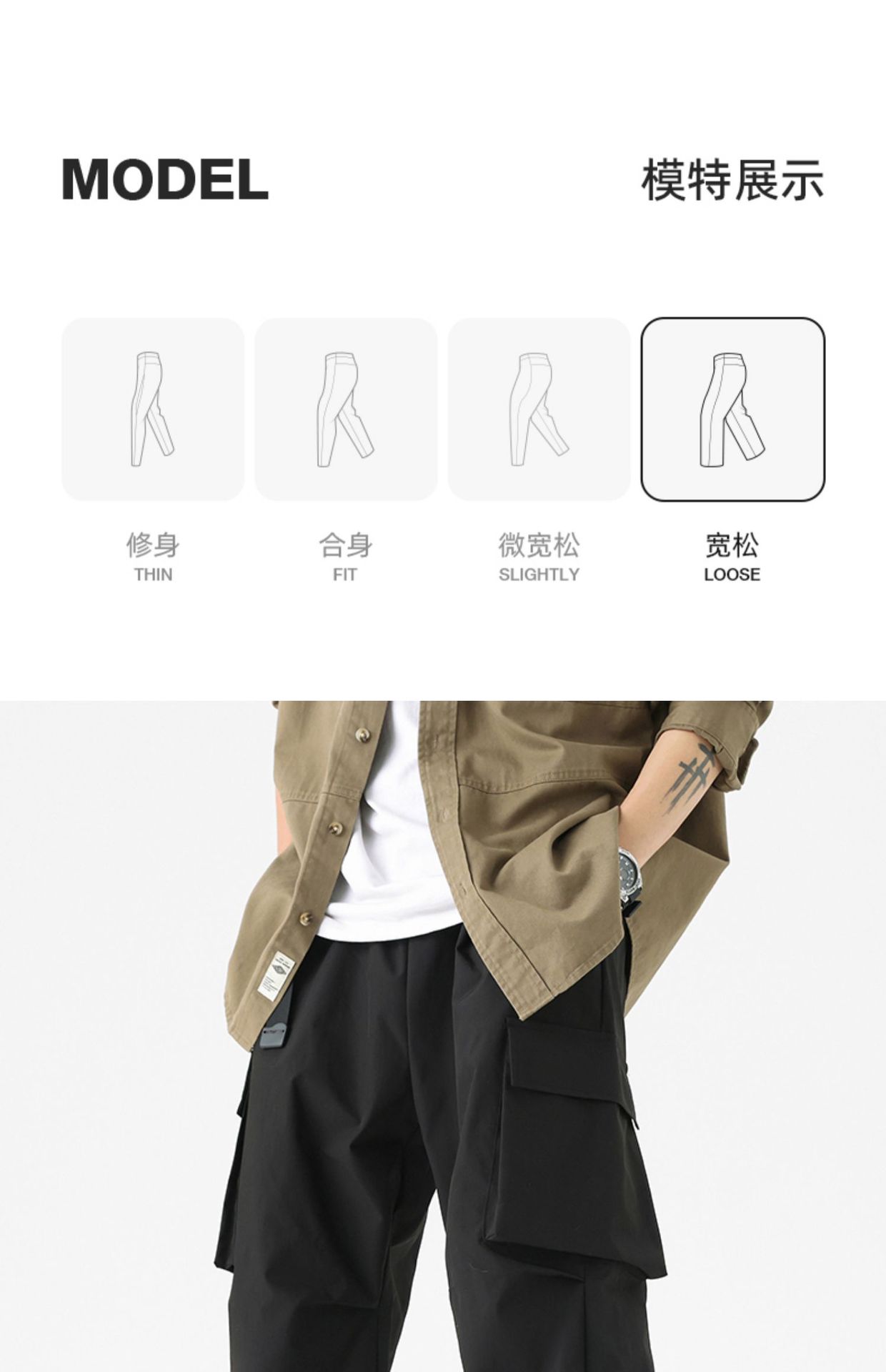 • BQ-3318 카키 (스트레이트 정사이즈)