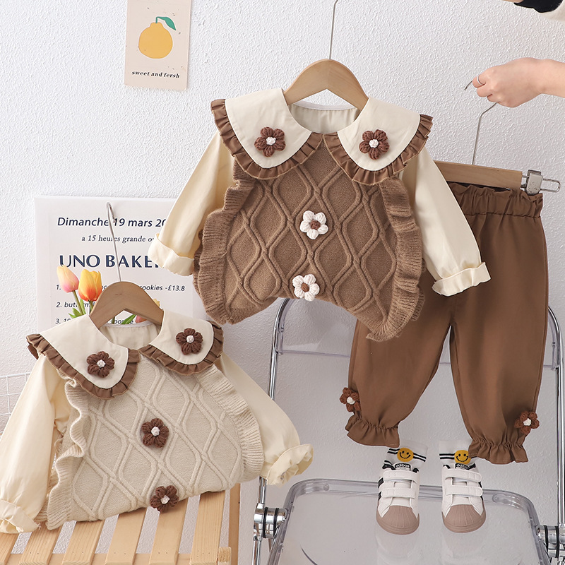 아기 소녀의 봄 옷 세트 서양식 아동복 아동복 새 소녀의 봄과 가을 스웨터 조끼 3 피스 세트 2847스토어 가기