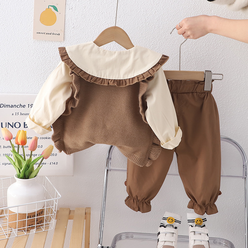 아기 소녀의 봄 옷 세트 서양식 아동복 아동복 새 소녀의 봄과 가을 스웨터 조끼 3 피스 세트 2847