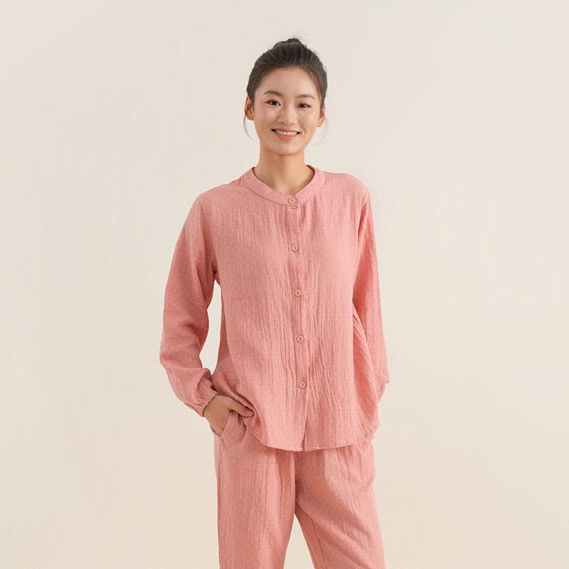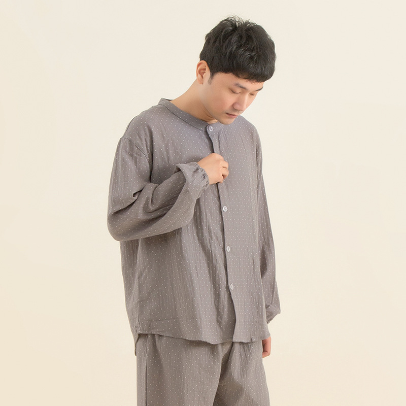 잠옷 봄과 가을 여성면 이중층 거즈 쑤저우 홈웨어 남성면 잠옷 커플 긴팔 플러스 사이즈스토어 가기