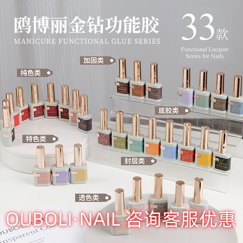 Ou Boli 금 다이아몬드 바닥 접착제 밀봉 층 기능 네일 폴란드 접착제 건설 새로운 고양이 눈 프로스트 레벨링 접착제 네일 살롱스토어 가기