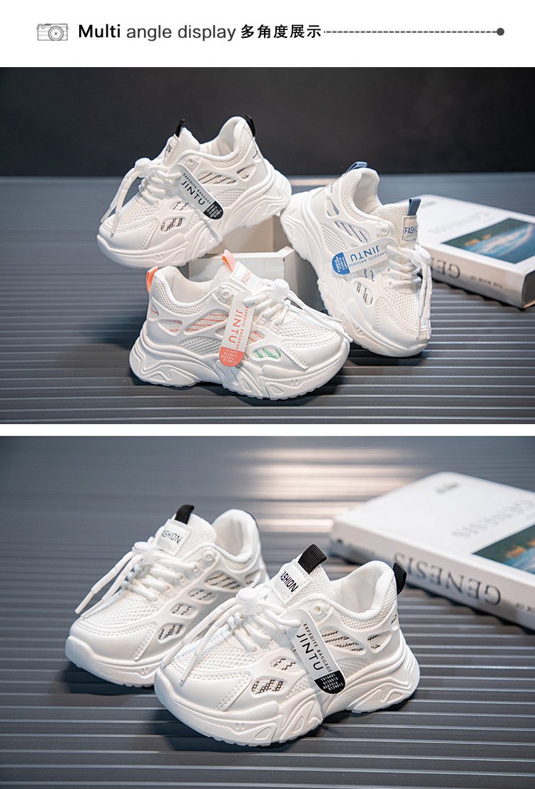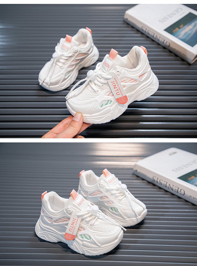 여아용 흰색 신발, 편안한 봄, 가을 새로운 부드러운 밑창 아동 운동화, 중대형 아동용 통기성 메쉬 여아 아빠 신발스토어 가기