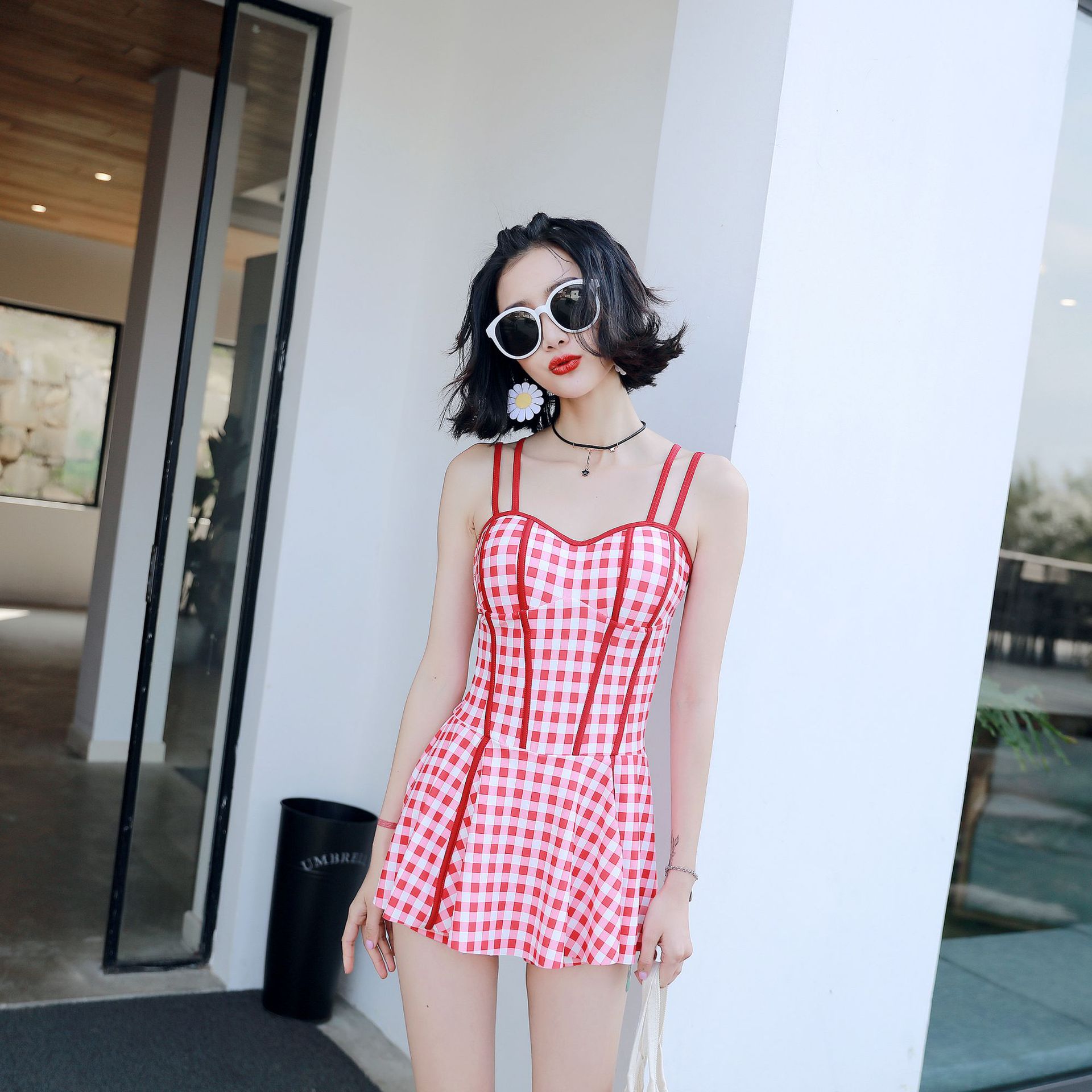2025년 신상 여성 수영복 원피스 스커트 스타일 요정풍 배 가리고 날씬해 보이는 섹시한 한국 인스타 스타일 온천 수영복스토어 가기