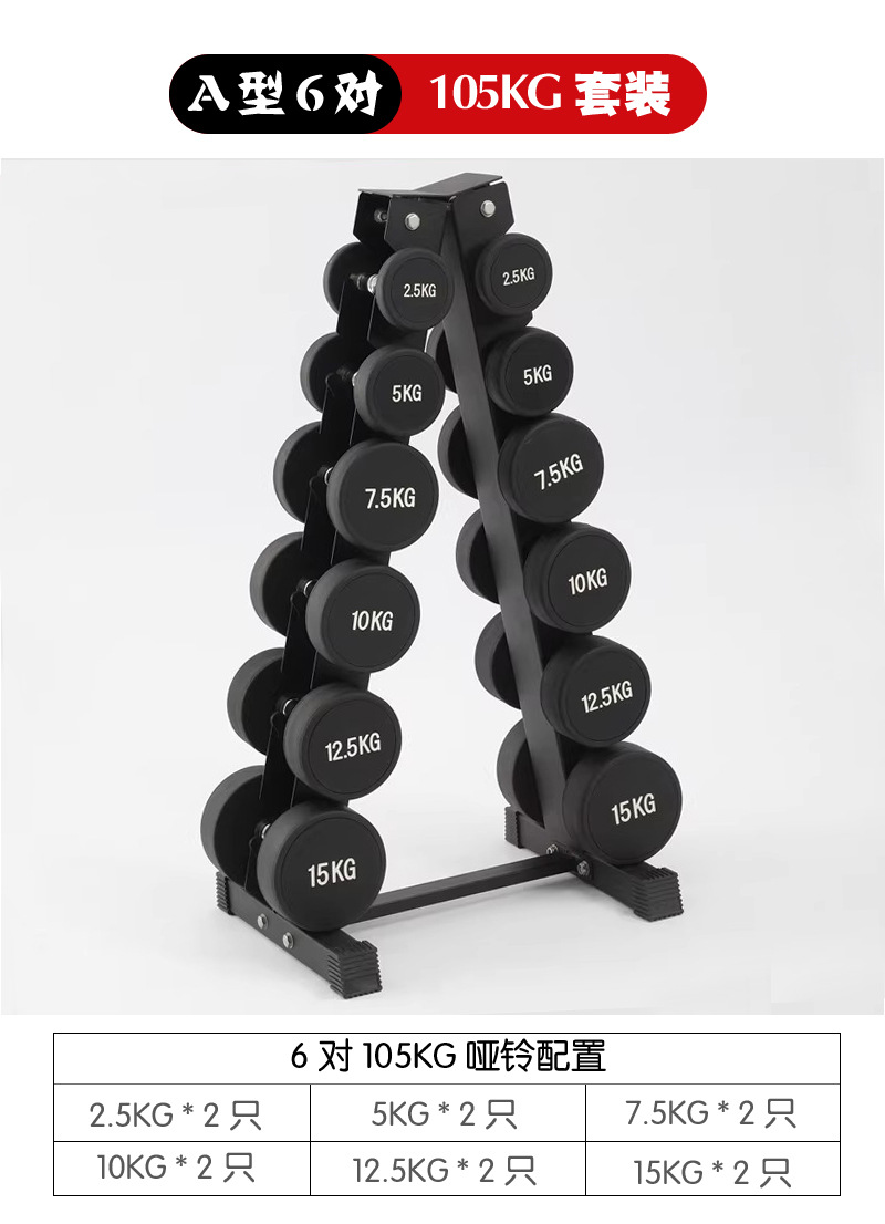 105KG套装:2.5公斤1对,5公斤1对,7.5公斤1对,10公斤1对,12.5公斤1对,15公斤1对;