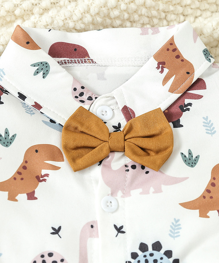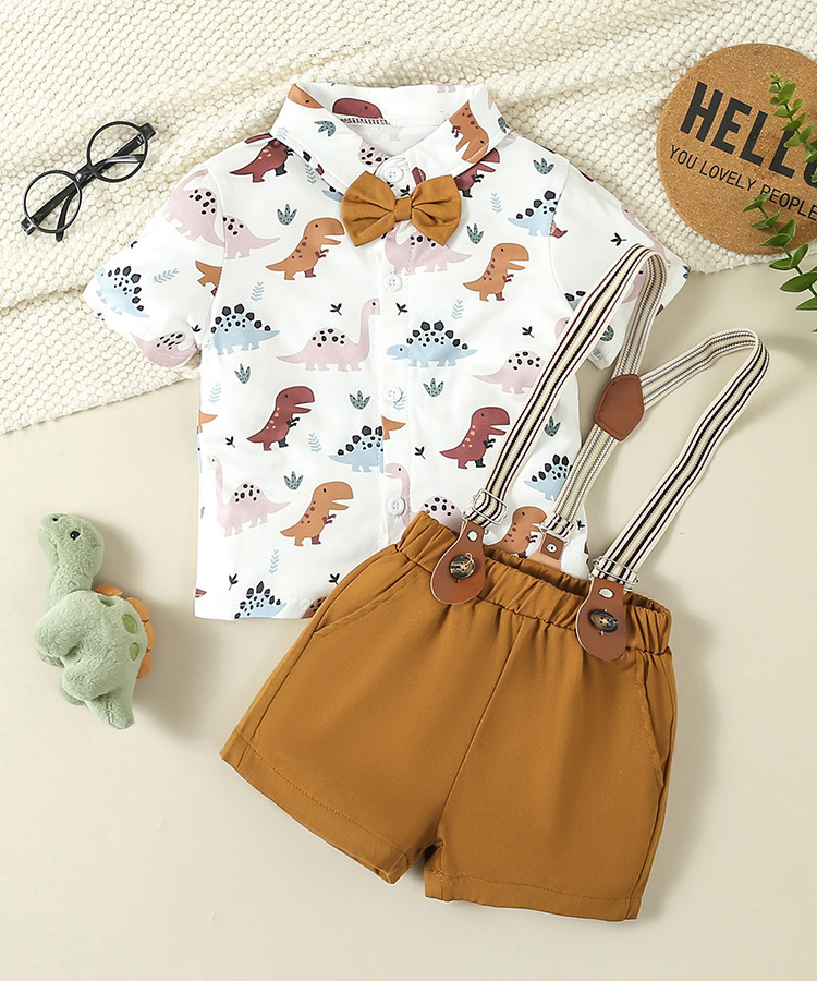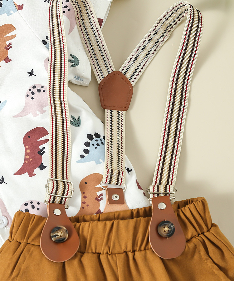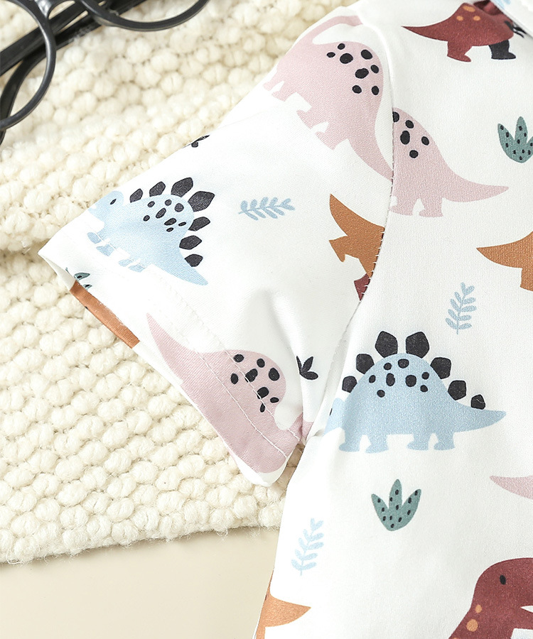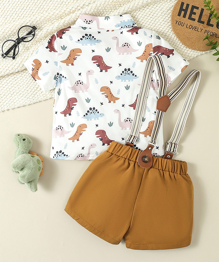 국경 간 소년 정장 여름 어린이 신사 드레스 공룡 프린트 아기 반팔 셔츠 바지 투피스 세트
