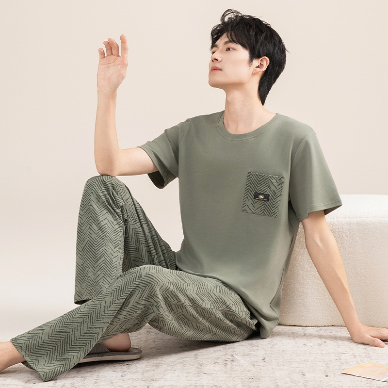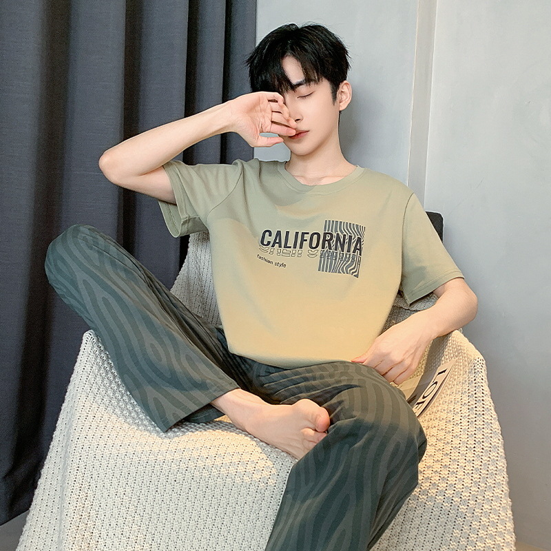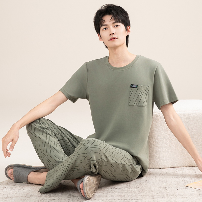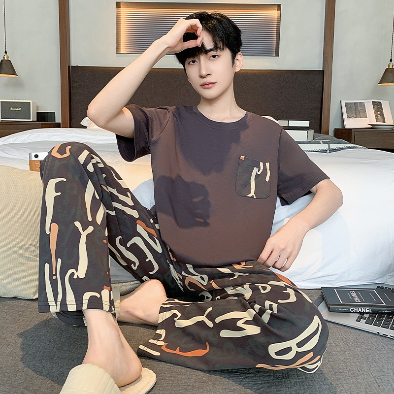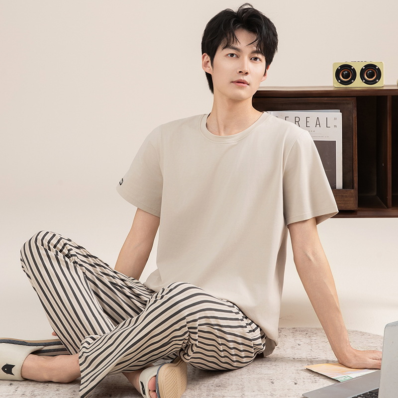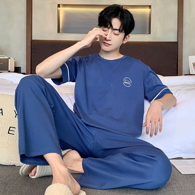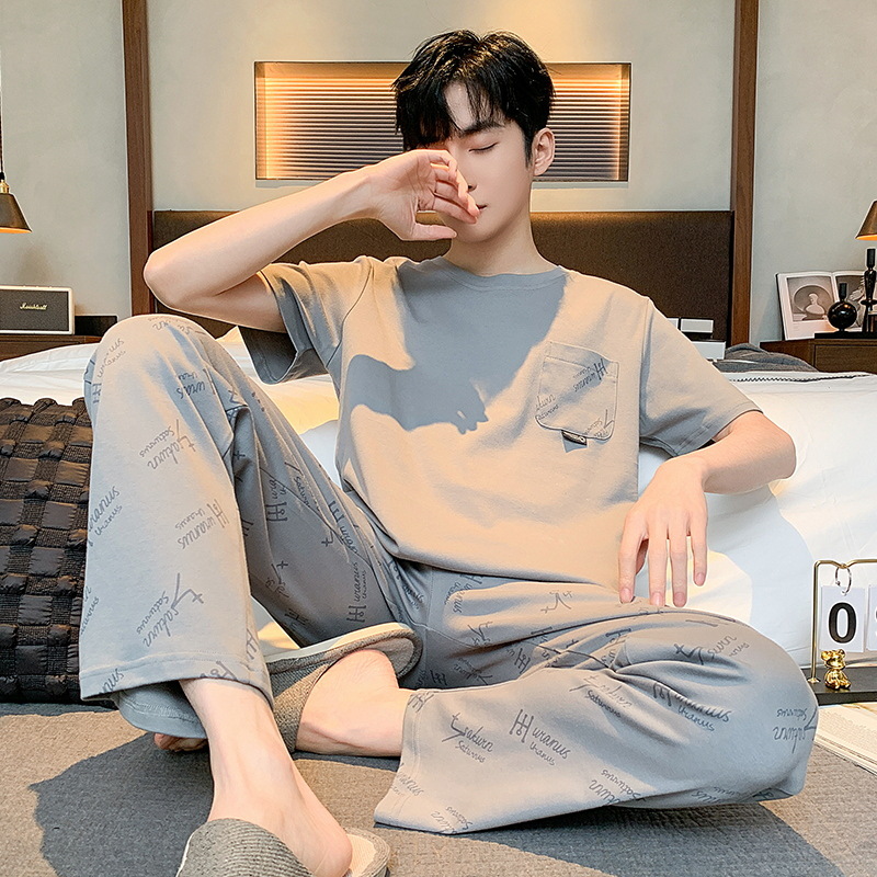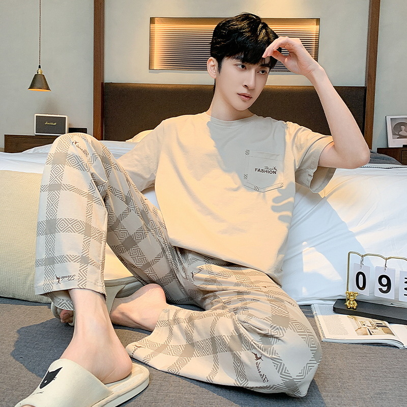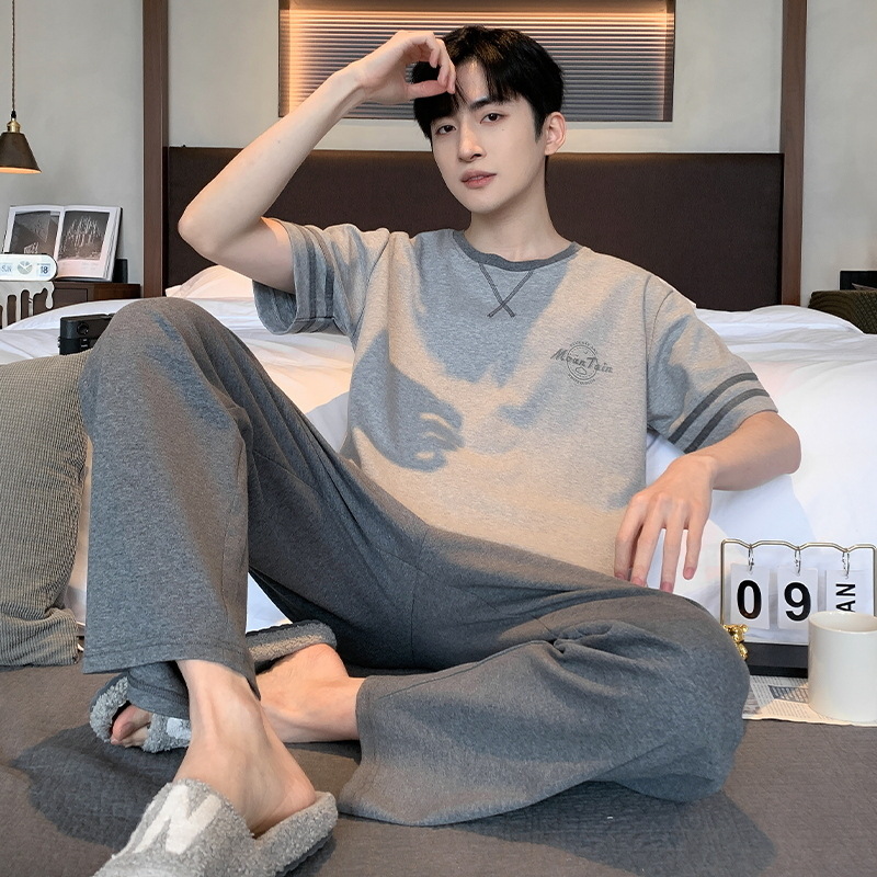 100% 순면 남성용 반팔 여름 반팔 바지 잠옷 얇은 캐주얼 면 홈웨어 세트