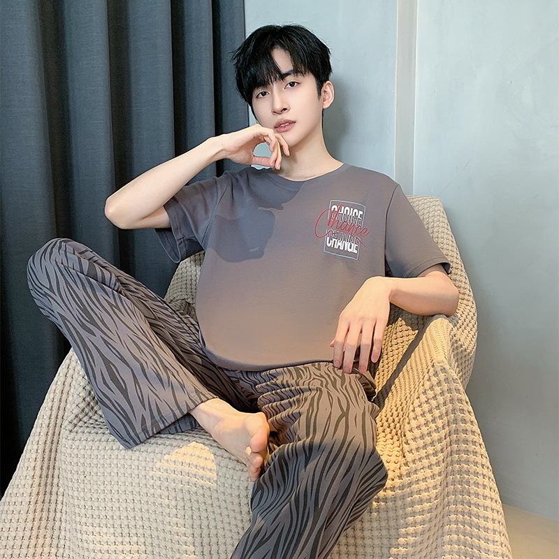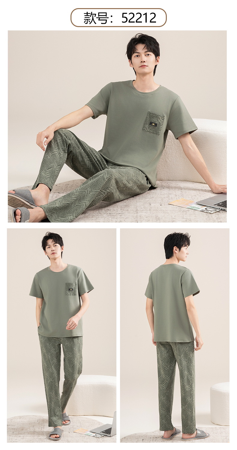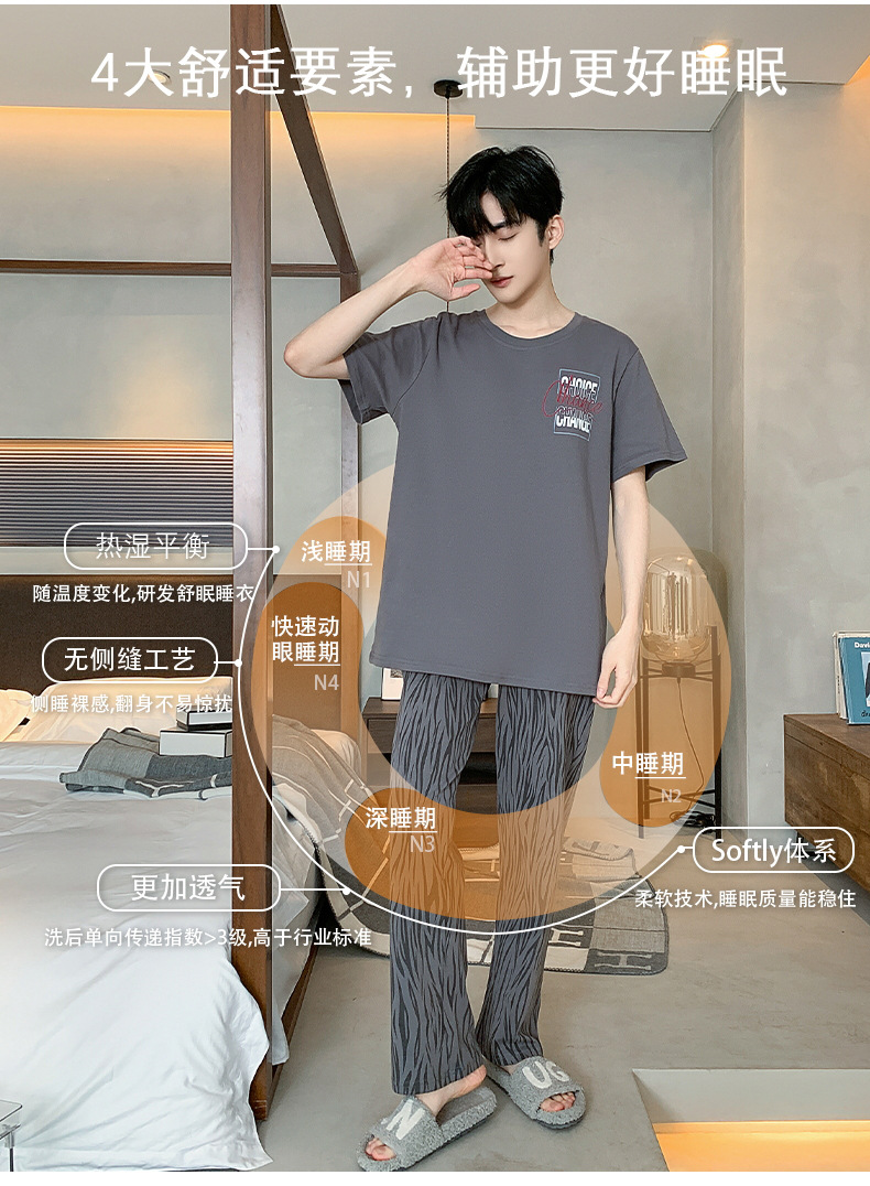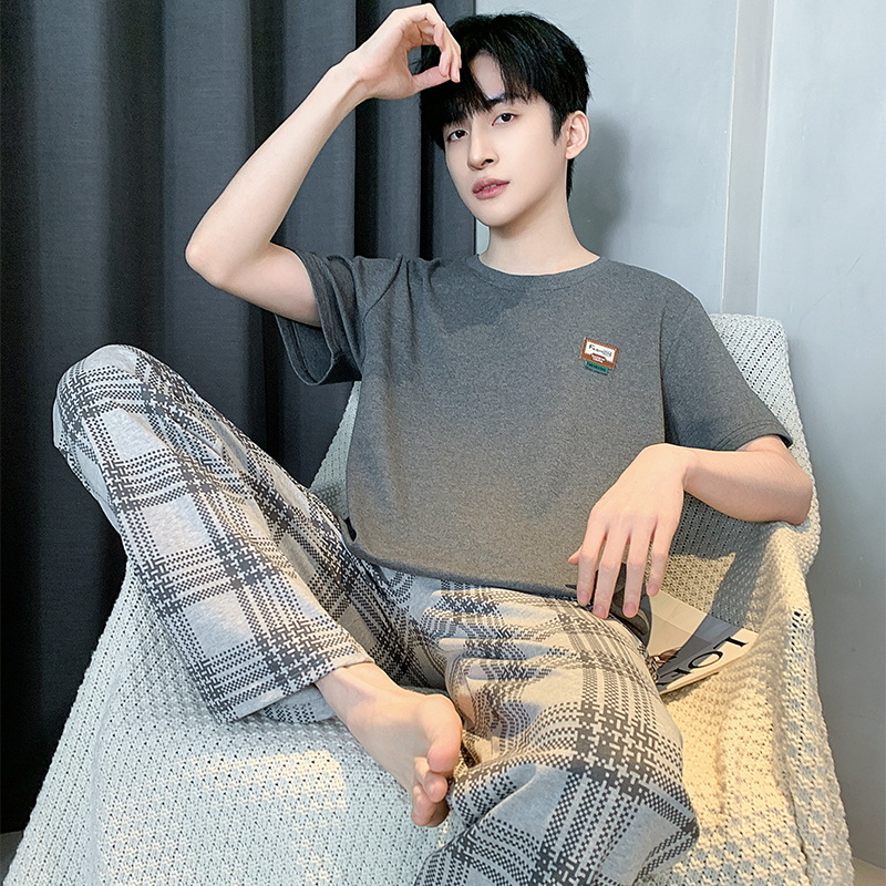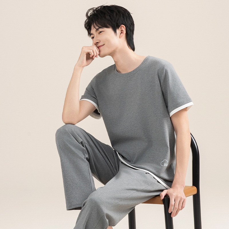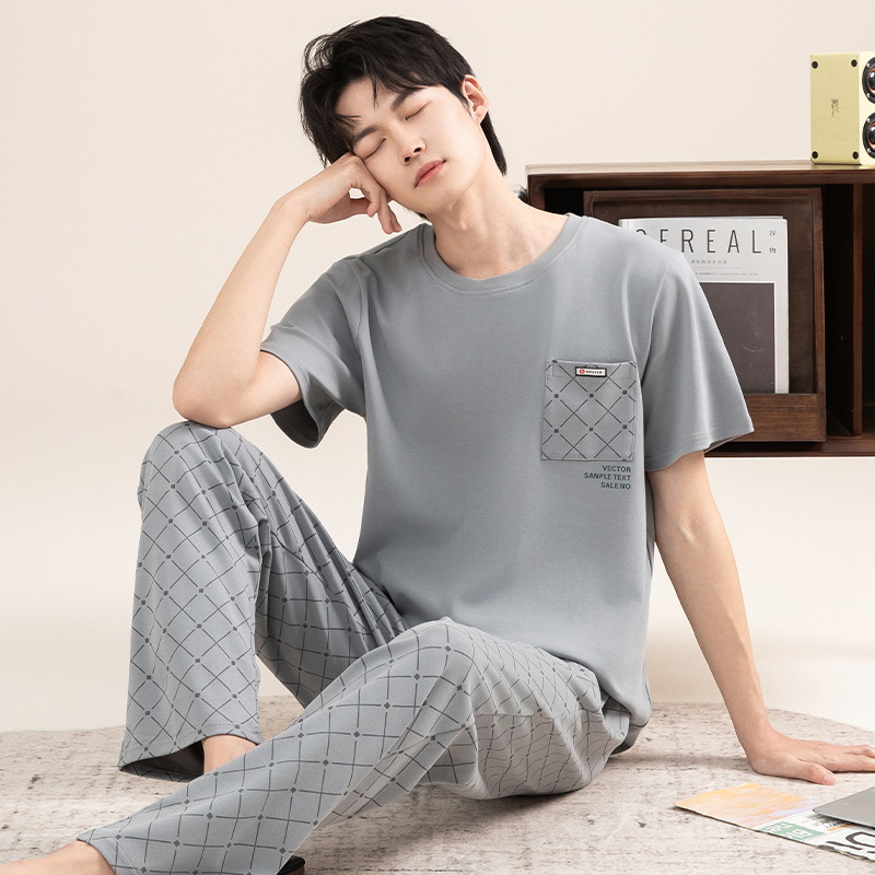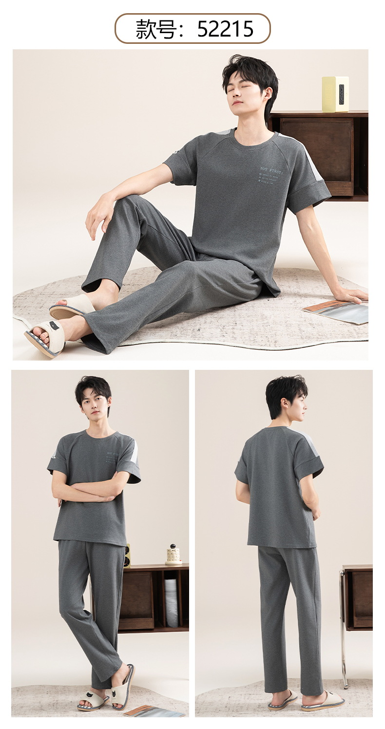 100% 순면 남성용 반팔 여름 반팔 바지 잠옷 얇은 캐주얼 면 홈웨어 세트스토어 가기