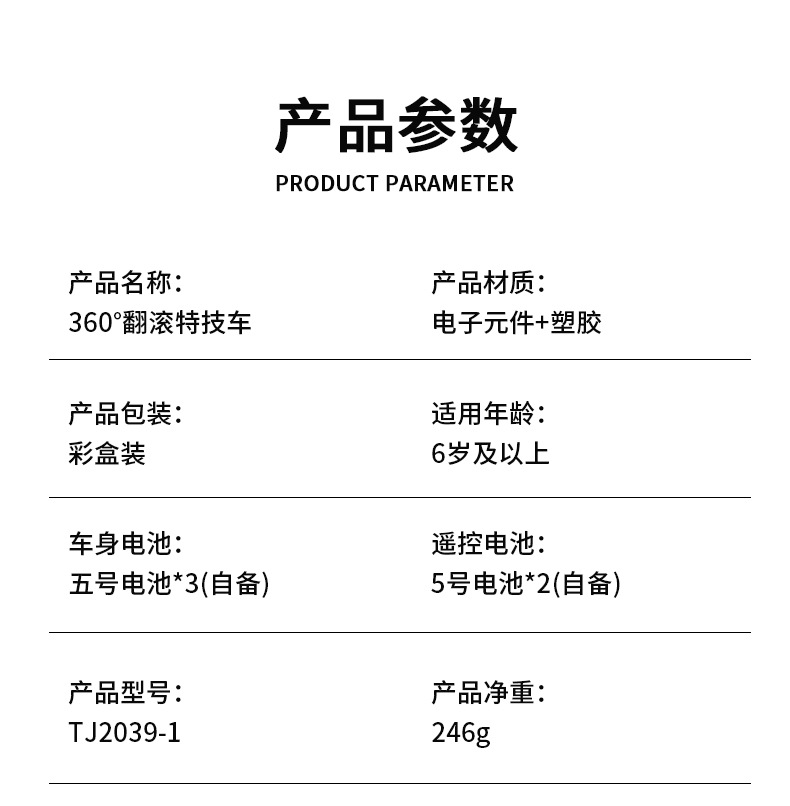 • NO.TJ2039-1 레드 롤링 스턴트 카 배터리 버전 246g