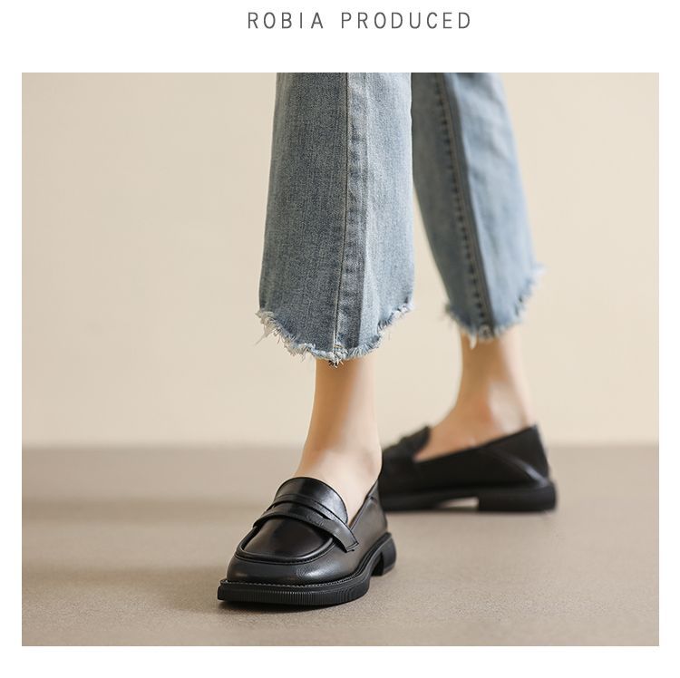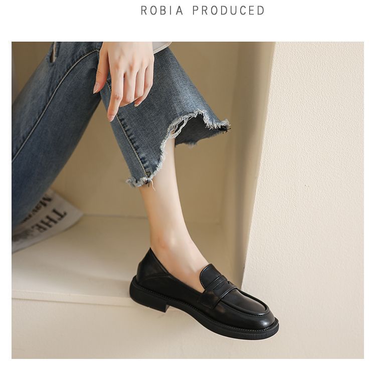 플러스 사이즈 여성 신발 41-43 검은 가죽 신발 여성 영국 스타일 레트로 올 매치 플랫 슈즈 42 청키 힐 로퍼스토어 가기