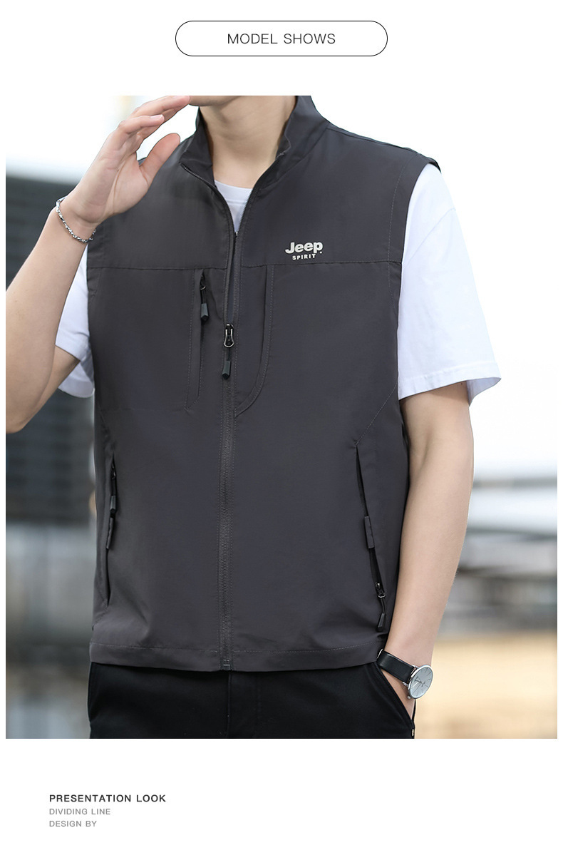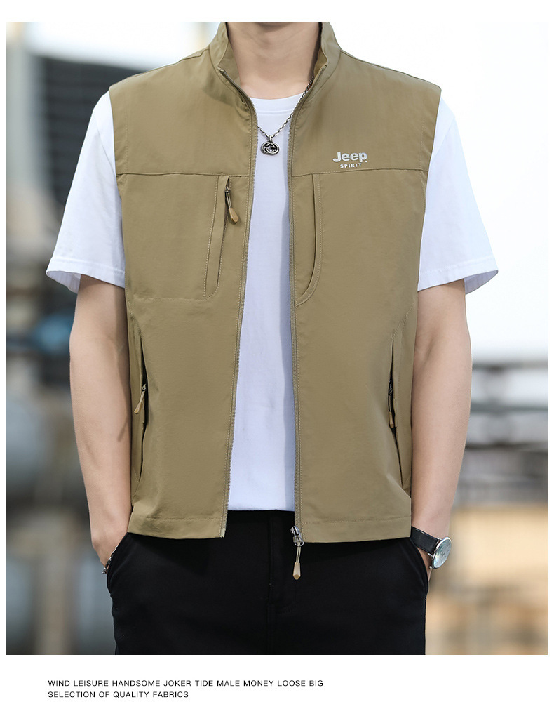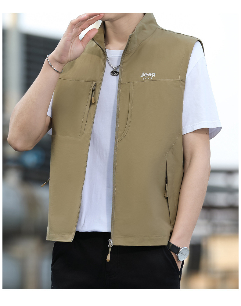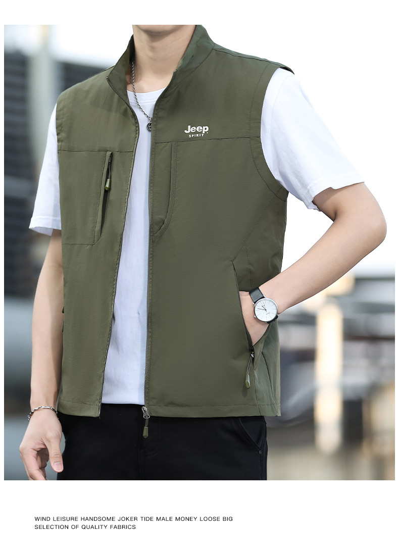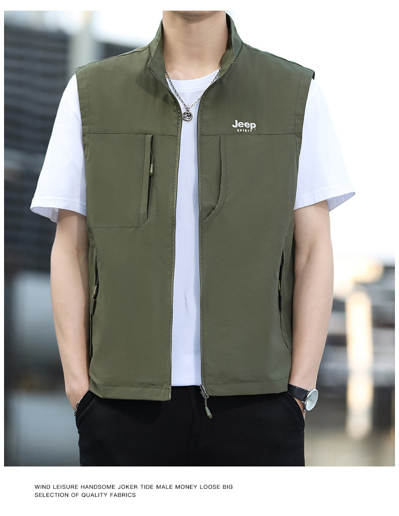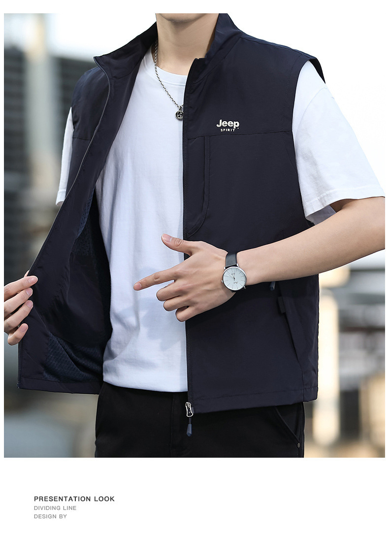 스피릿 봄 빠른 건조 조끼 남자 잘 생긴 캐주얼 칼라 야외 스포츠 조끼 남자 조끼 외부 착용