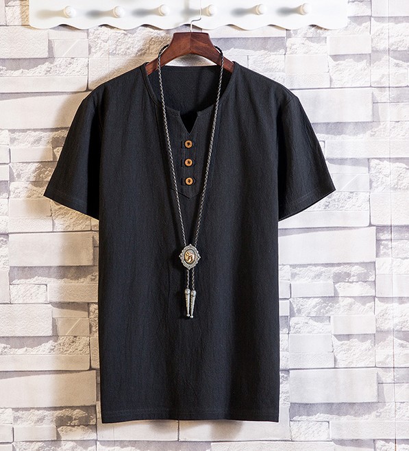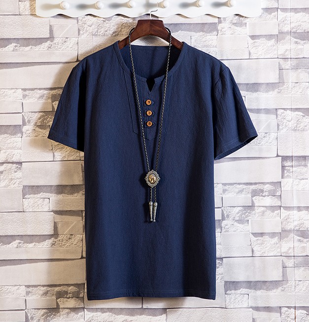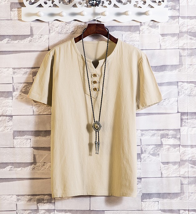 2024 여름 새로운 남성 일본 린넨 반팔 티셔츠 얇은 소프트 V 넥 코드와 린넨 청소년 패션 반팔 티셔츠스토어 가기