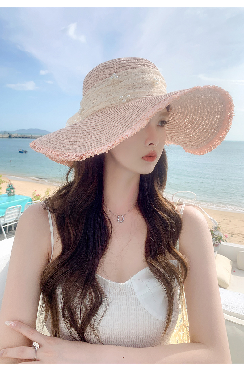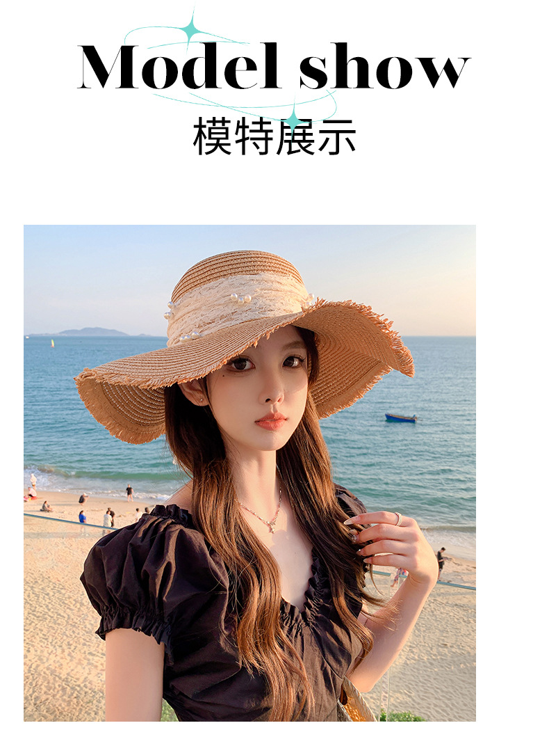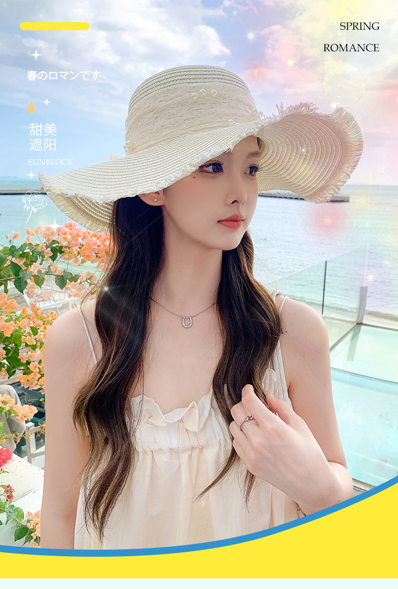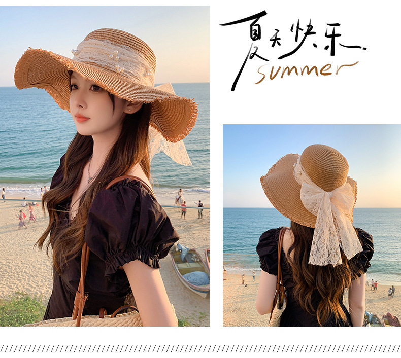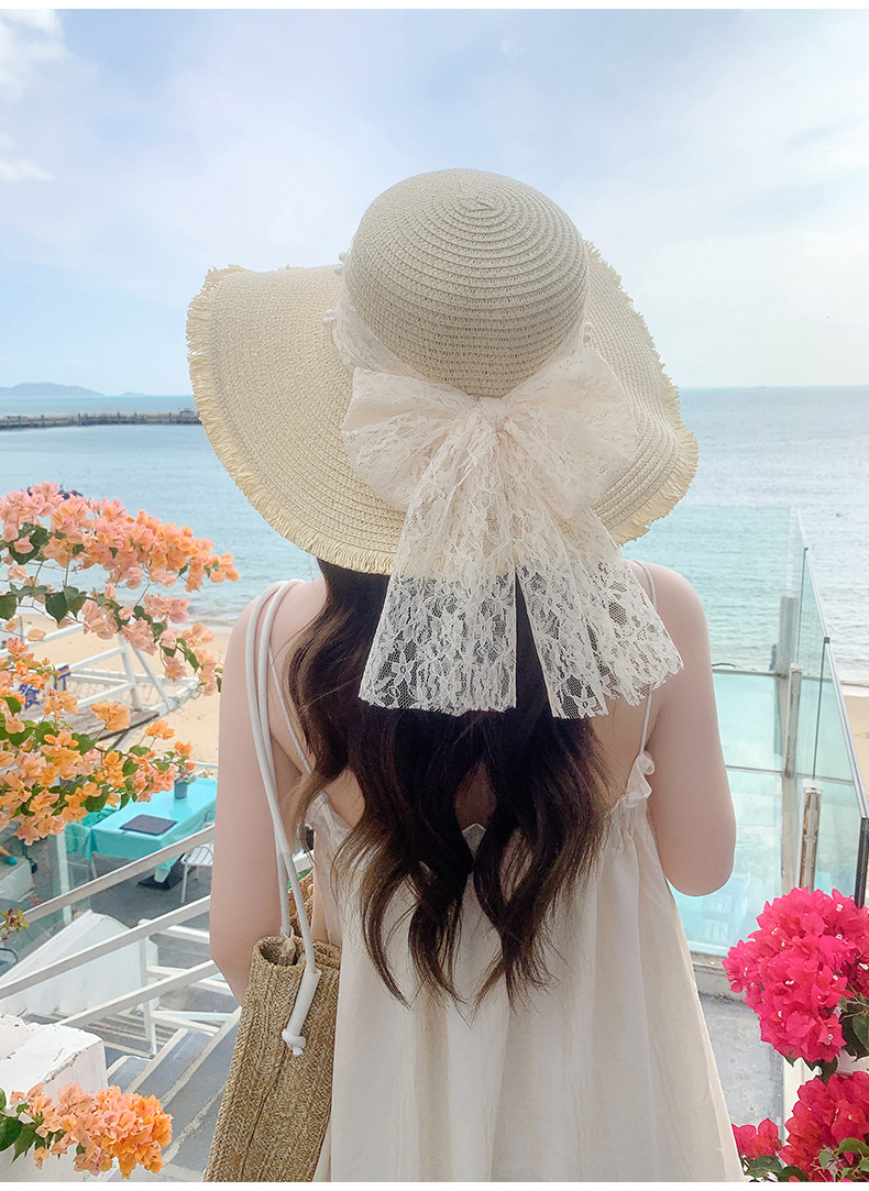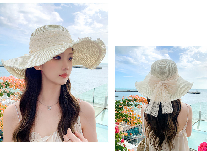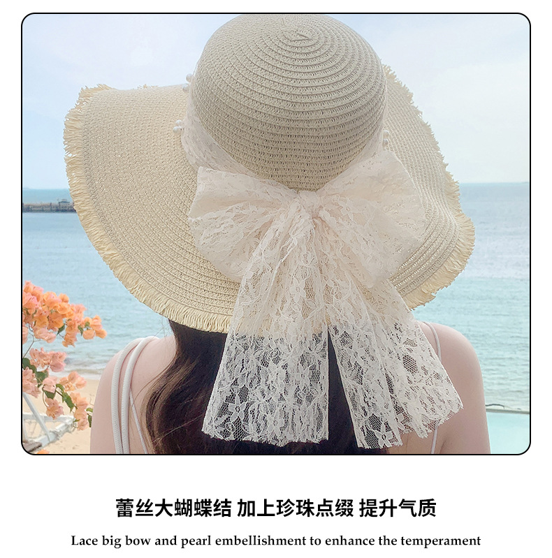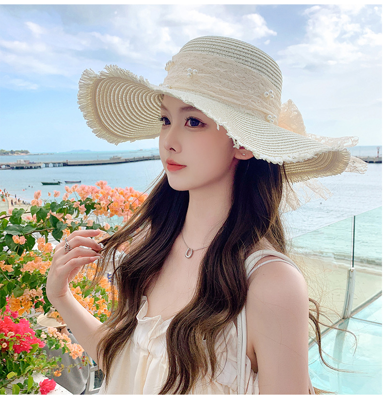 새로운 달콤한 큰 활 태양 모자 여성의 세련된 우아한 큰 테두리 태양 모자 야외 태양 모자