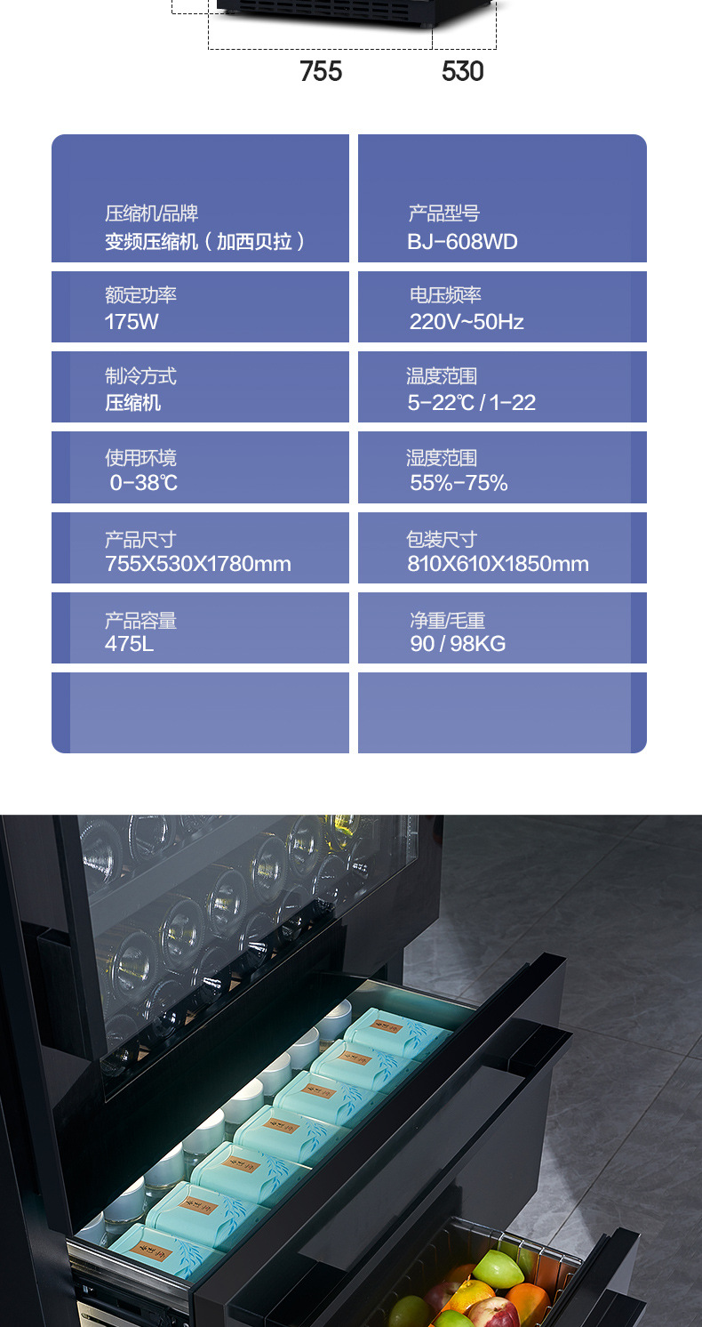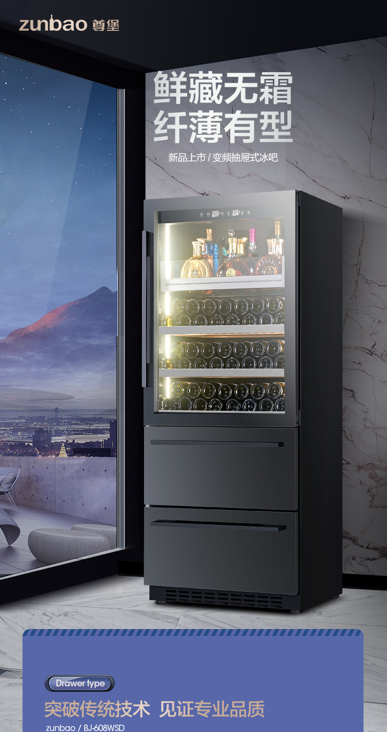 Zunbao 와인 캐비닛 초박형 임베디드 일정한 온도 가정용 차 음료 주류 과일 보존 냉장 디스플레이 캐비닛스토어 가기