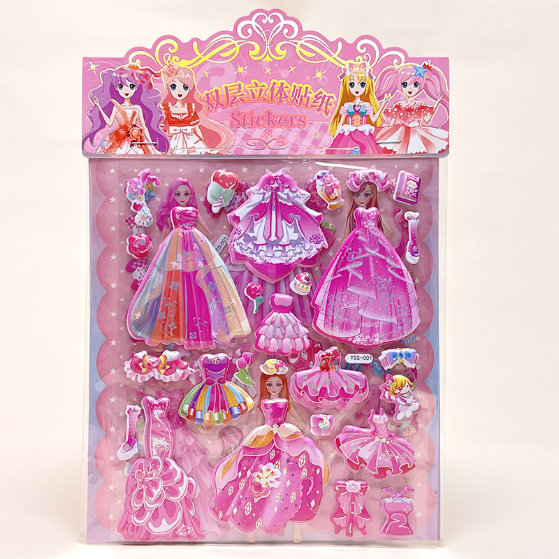 더블 레이어 소녀 만화 공주 원피스 스티커 어린이 옷 스티커 3 차원 스폰지 거품 스티커 장난감 스티커스토어 가기