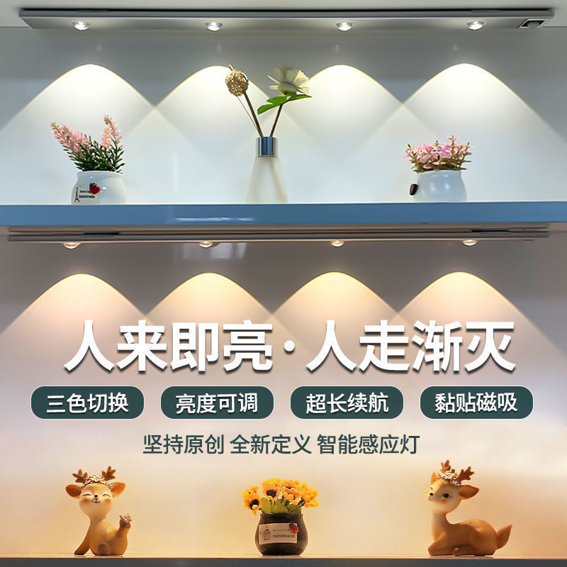 스마트 led 충전식 인체 센서 라이트 스트립 캐비닛 하단 옷장 밤 빛 자기 흡입 복도 캐비닛 라이트 와인 캐비닛 조명스토어 가기