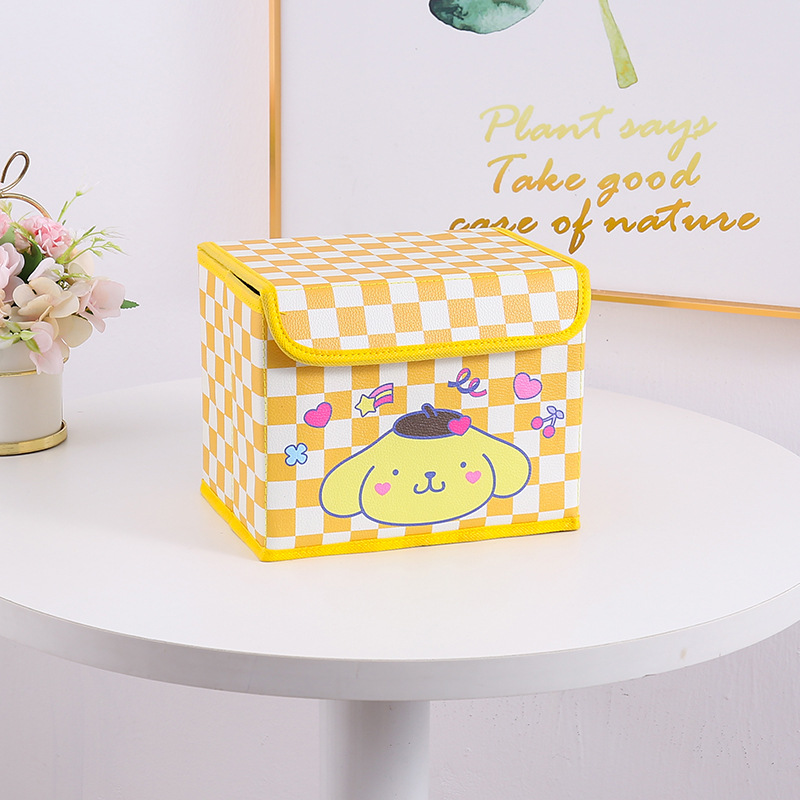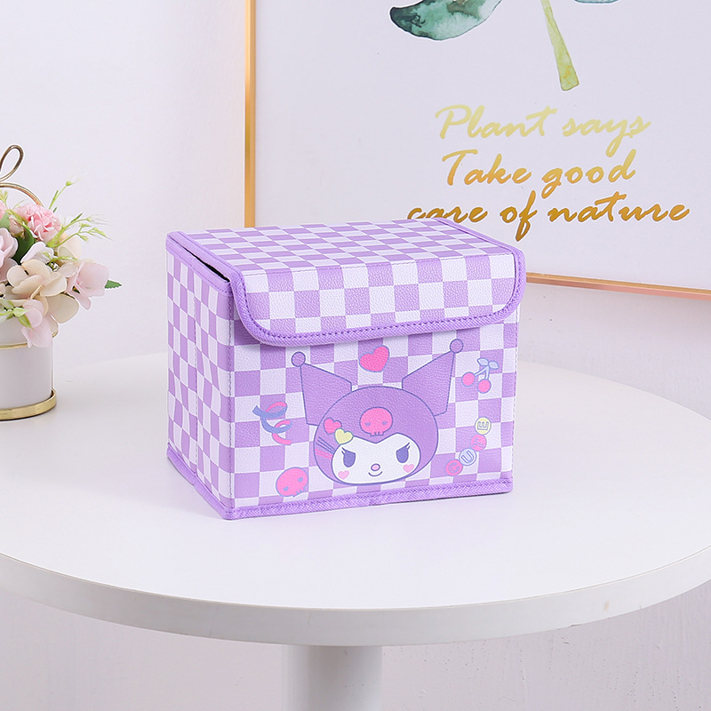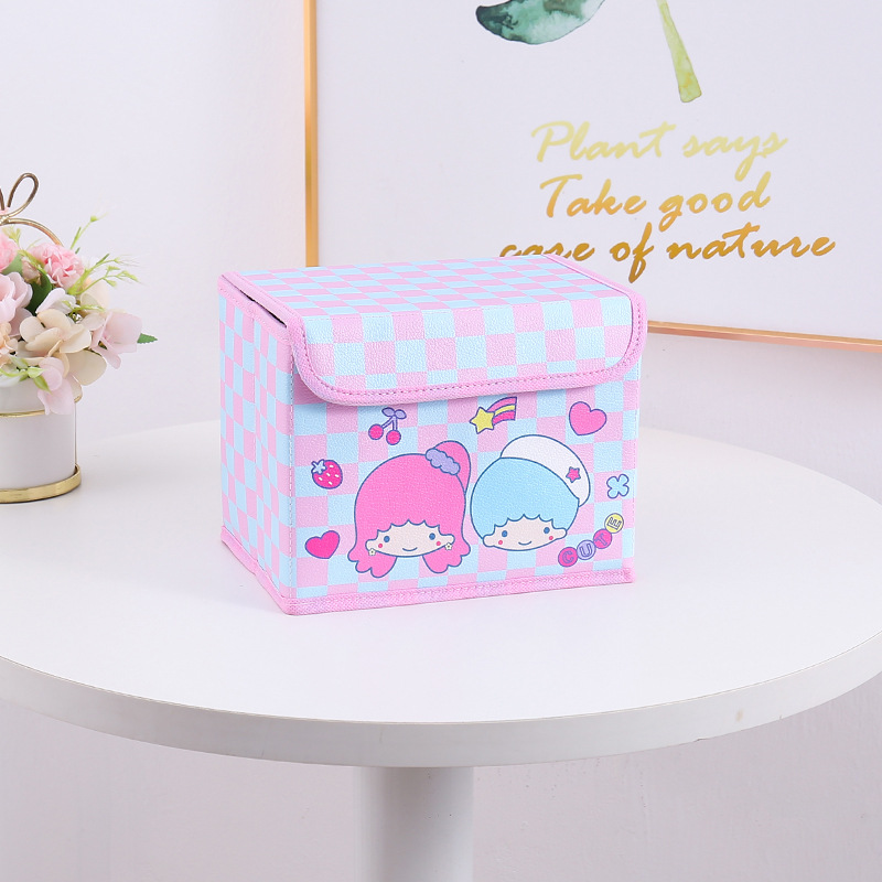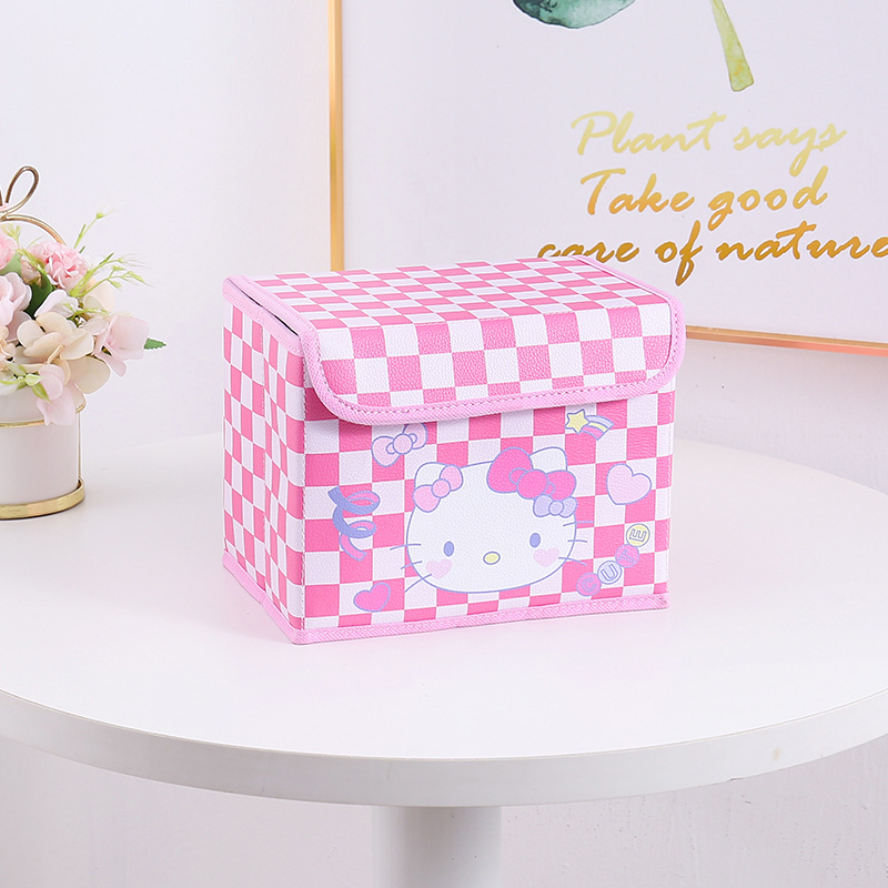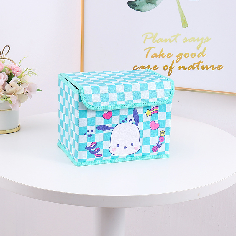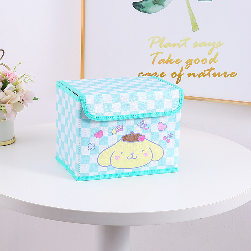 만화 PU 격자 무늬 시리즈 플립 데스크탑 잡화 작은 저장 상자 사무실 침실 옷장 드레싱 테이블 접이식스토어 가기
