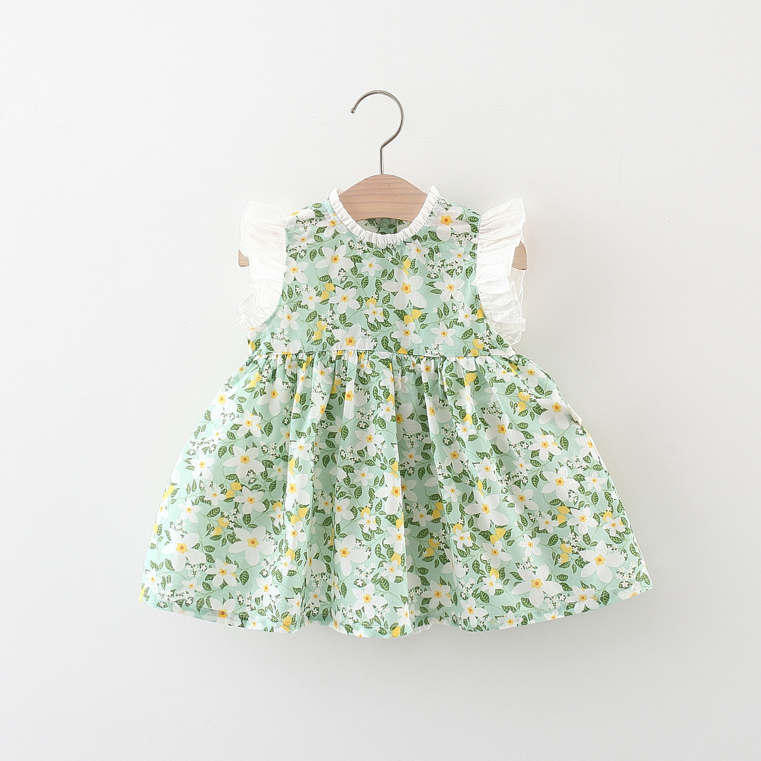 여름 2024 새로운 전체 길이 꽃 비행 소매 원피스 소녀들의 한국식 뒷면 원피스스토어 가기
