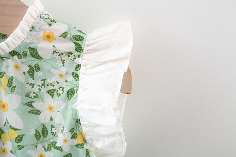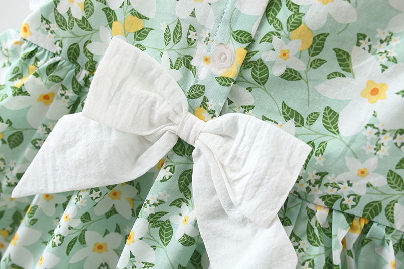 特点:飞袖 小碎花 后背蝴蝶结