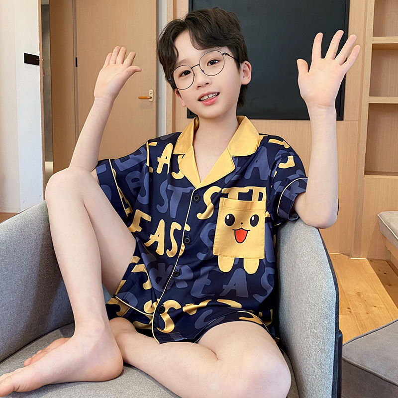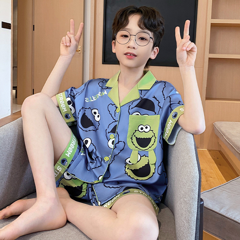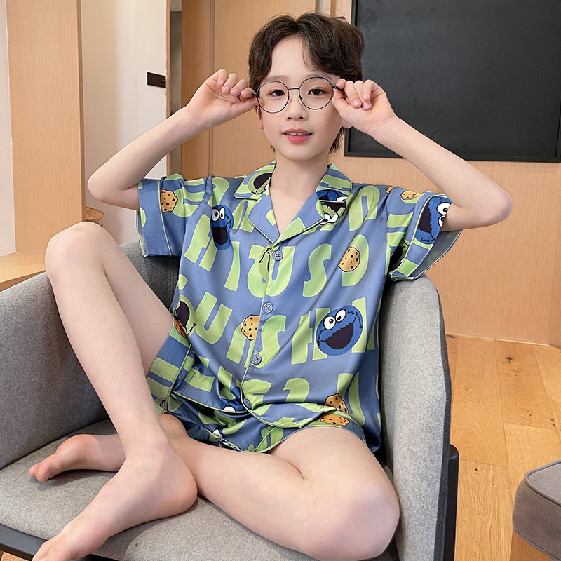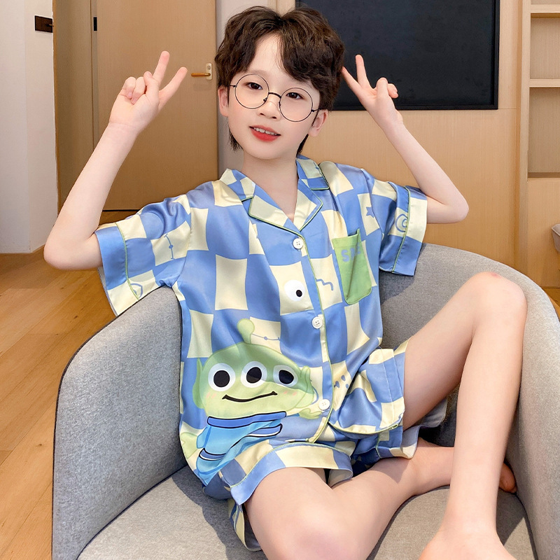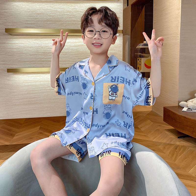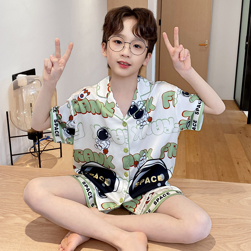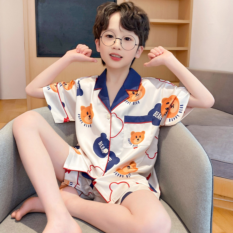 어린이 잠옷 소년 여름 얇은 여름 얼음 실크 봄과 여름 빅 보이 소년 실크 홈웨어 2024 뉴스토어 가기