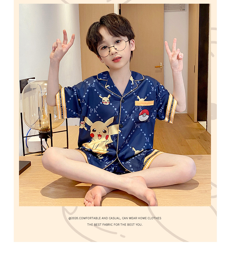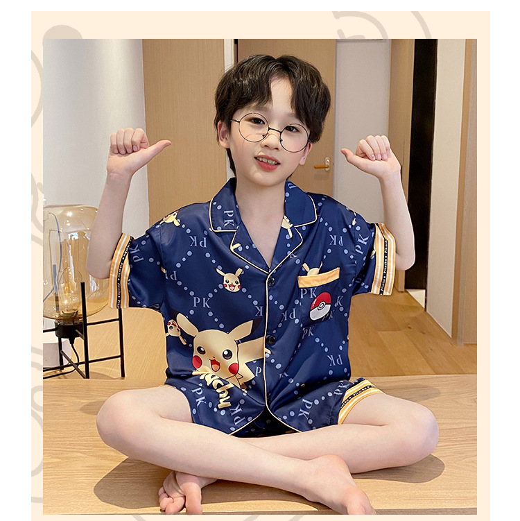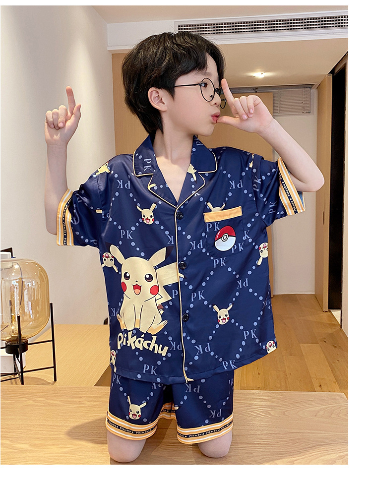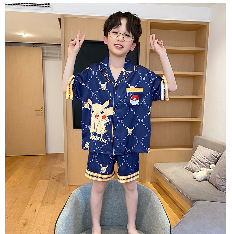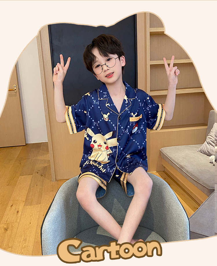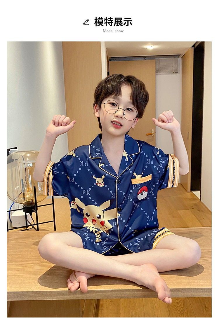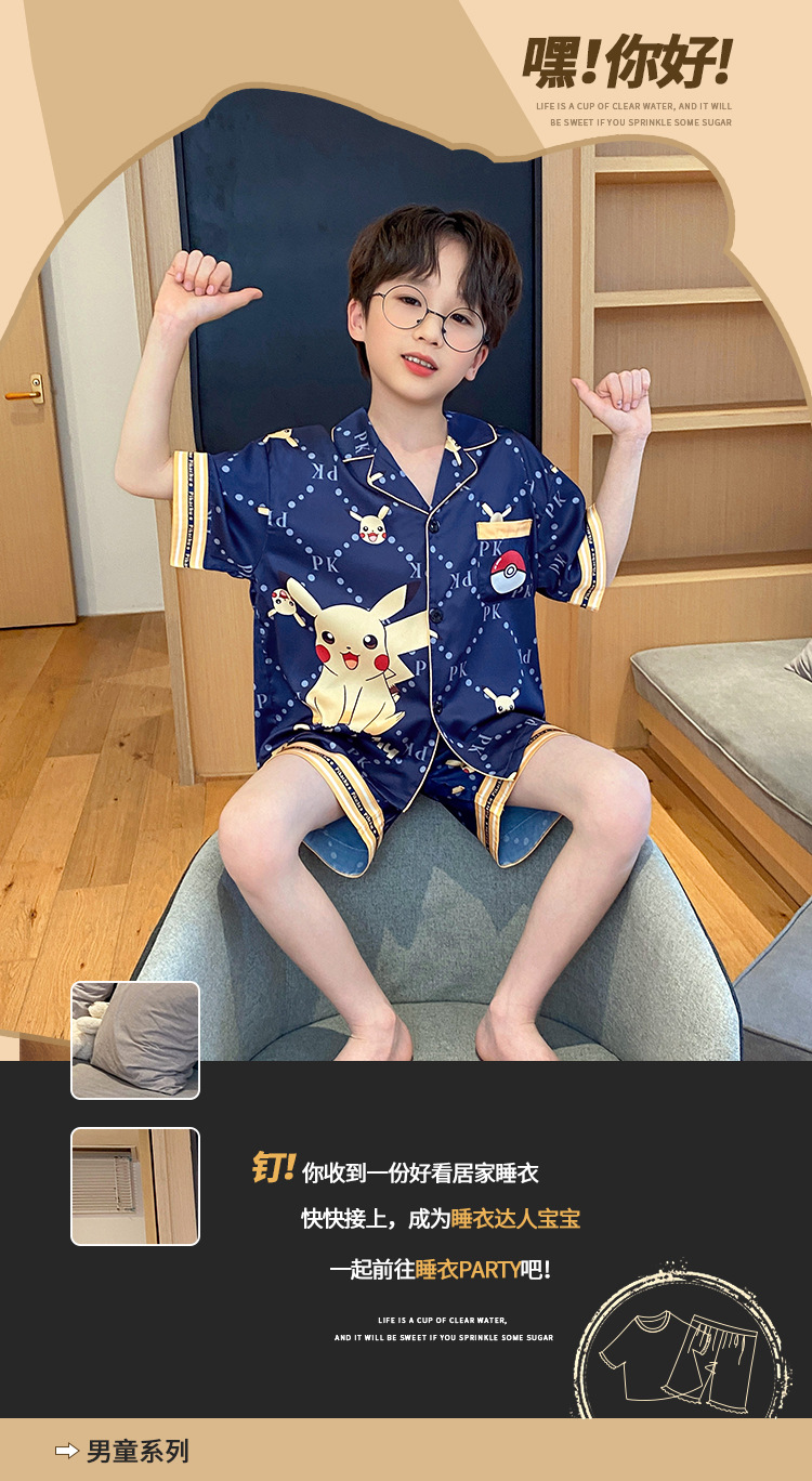 어린이 잠옷 소년 여름 얇은 여름 얼음 실크 봄과 여름 빅 보이 소년 실크 홈웨어 2024 뉴스토어 가기