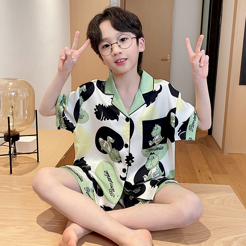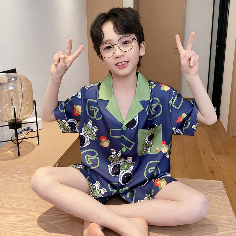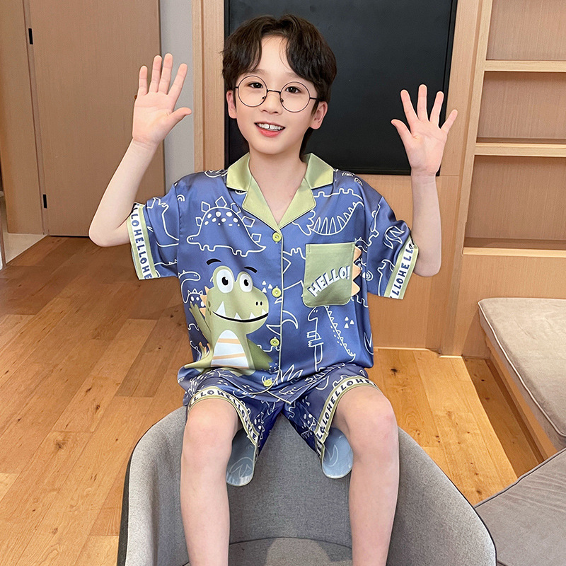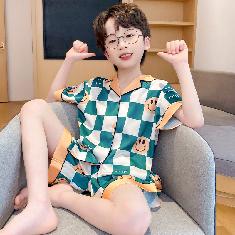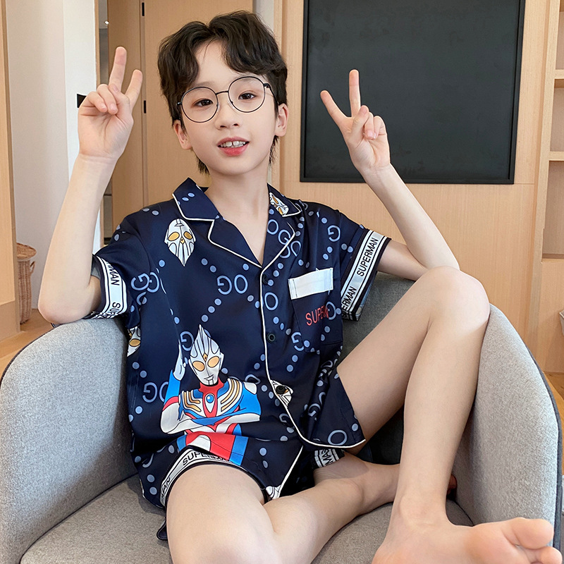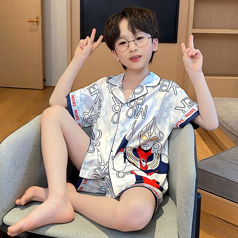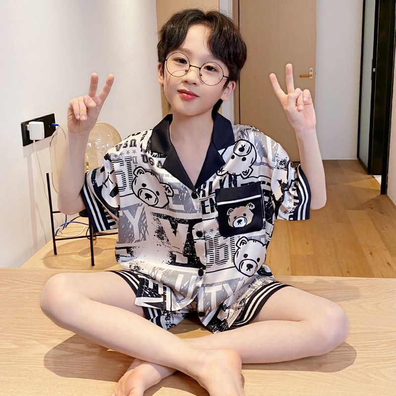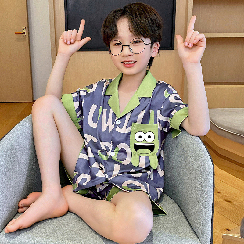 어린이 잠옷 소년 여름 얇은 여름 얼음 실크 봄과 여름 빅 보이 소년 실크 홈웨어 2024 뉴