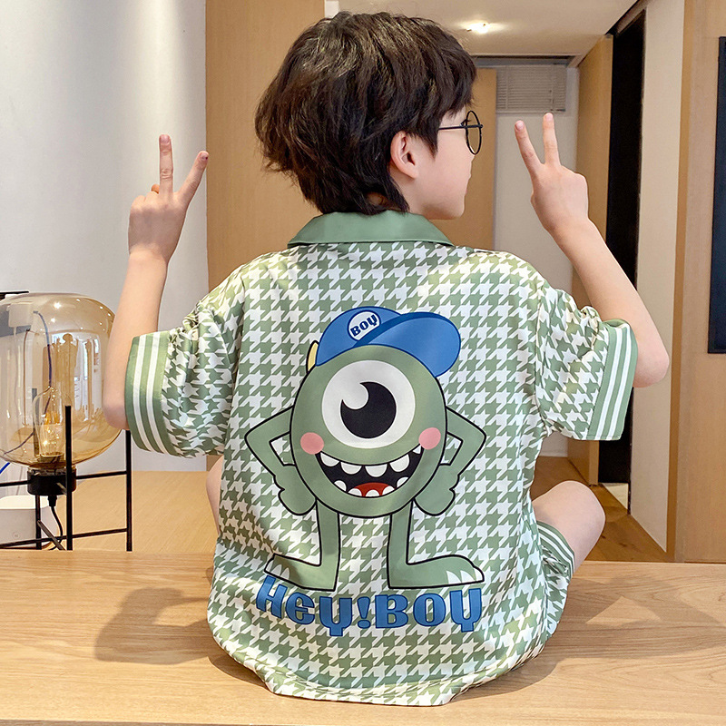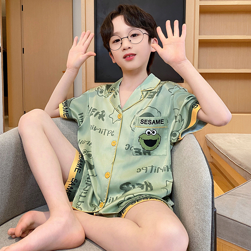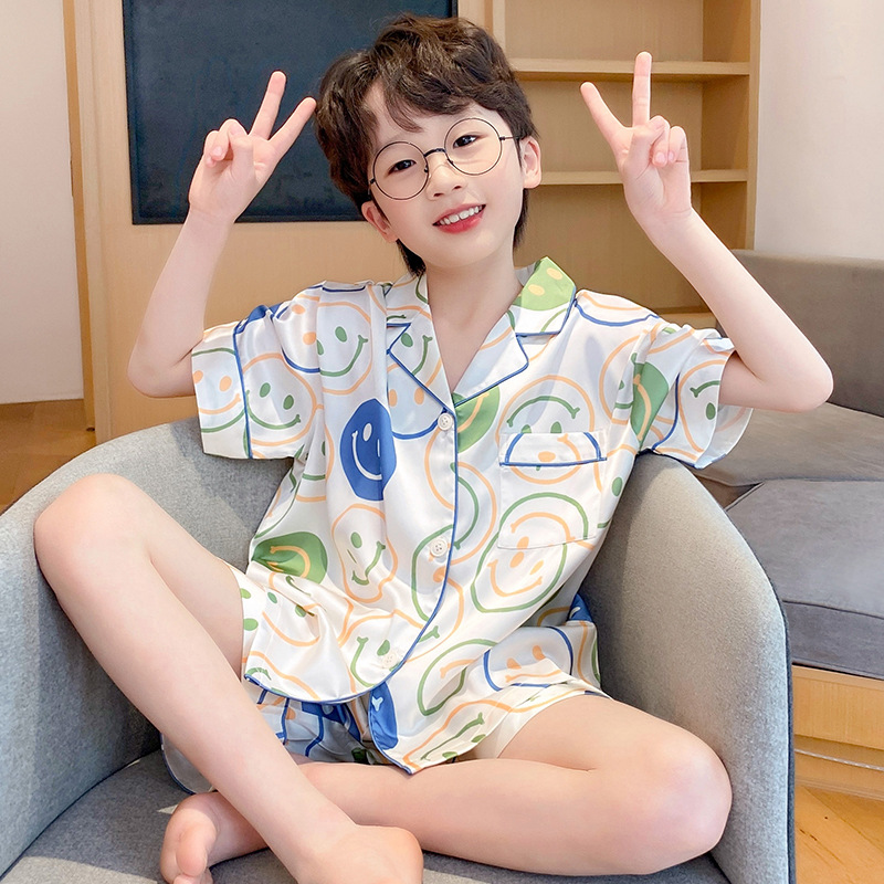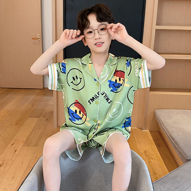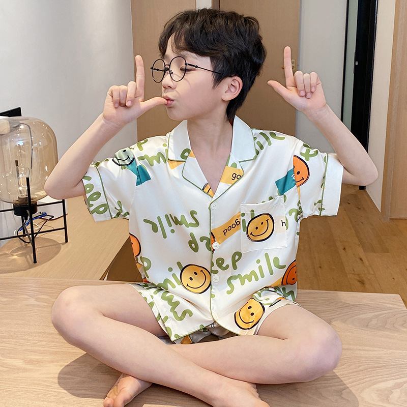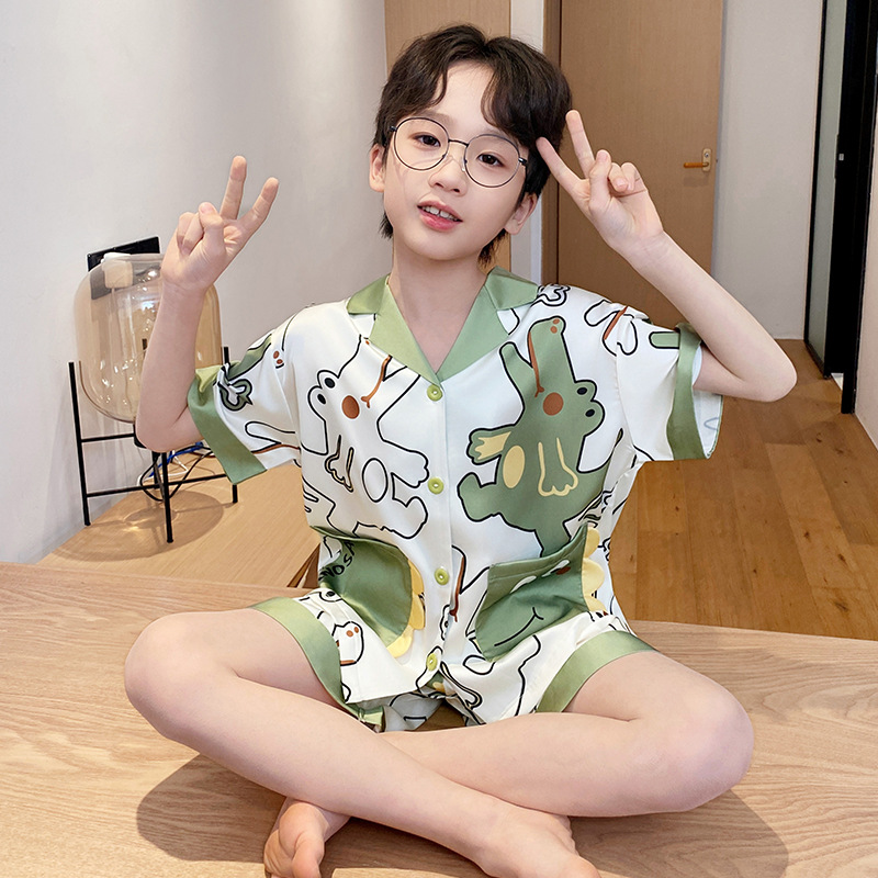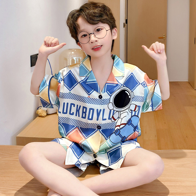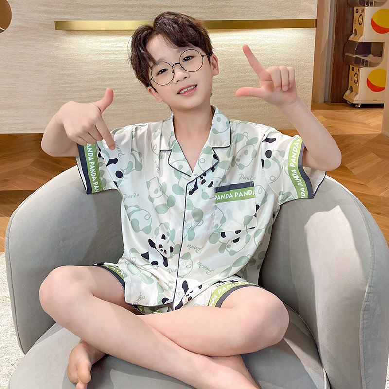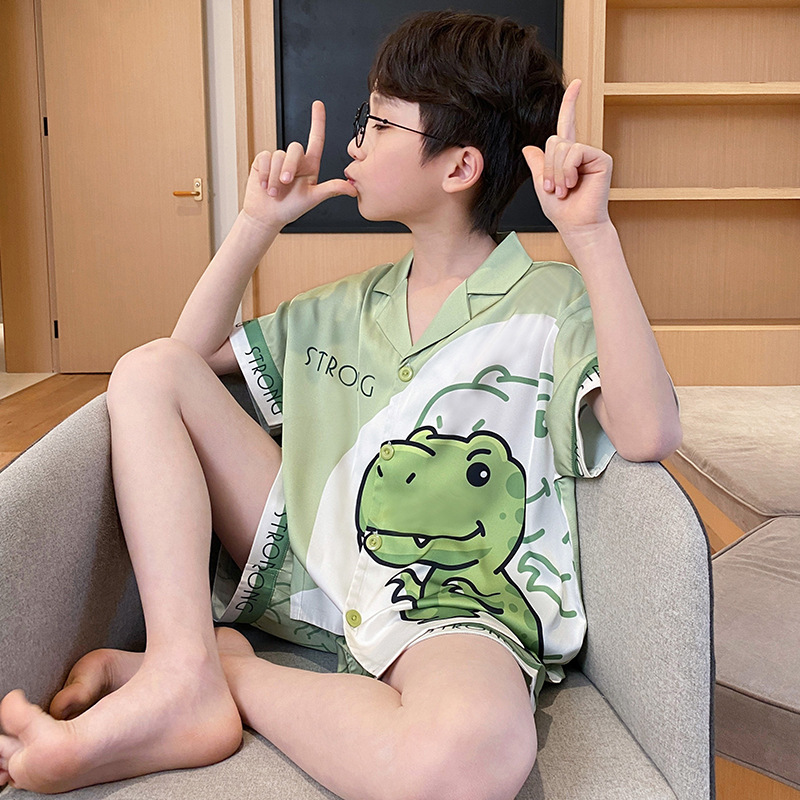 어린이 잠옷 소년 여름 얇은 여름 얼음 실크 봄과 여름 빅 보이 소년 실크 홈웨어 2024 뉴