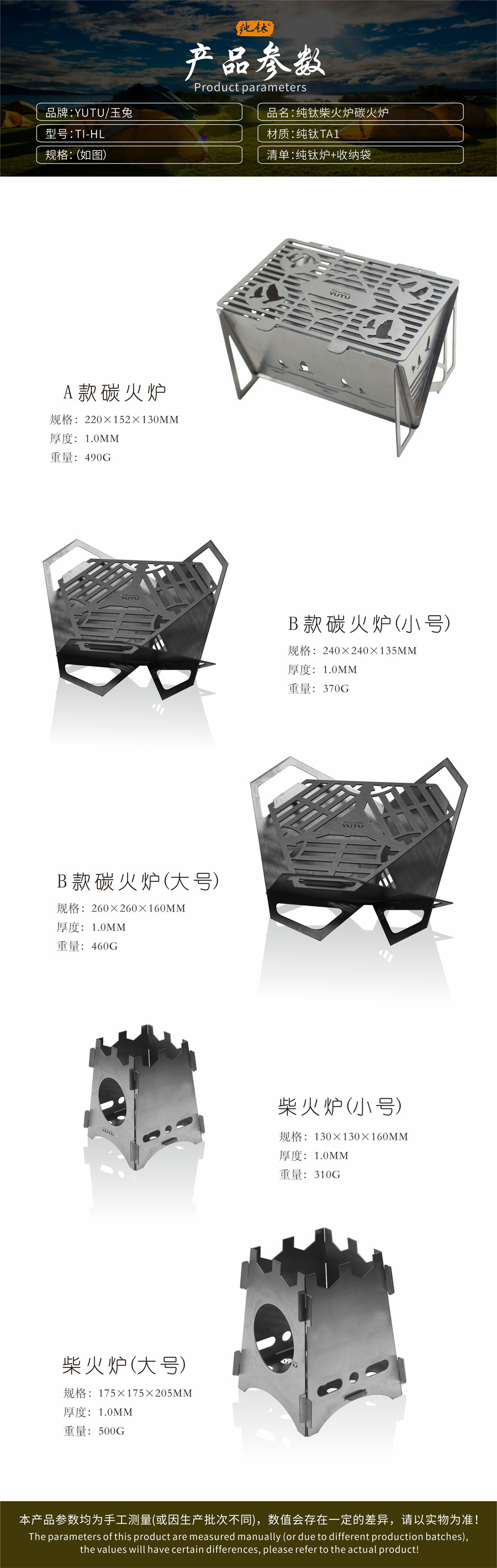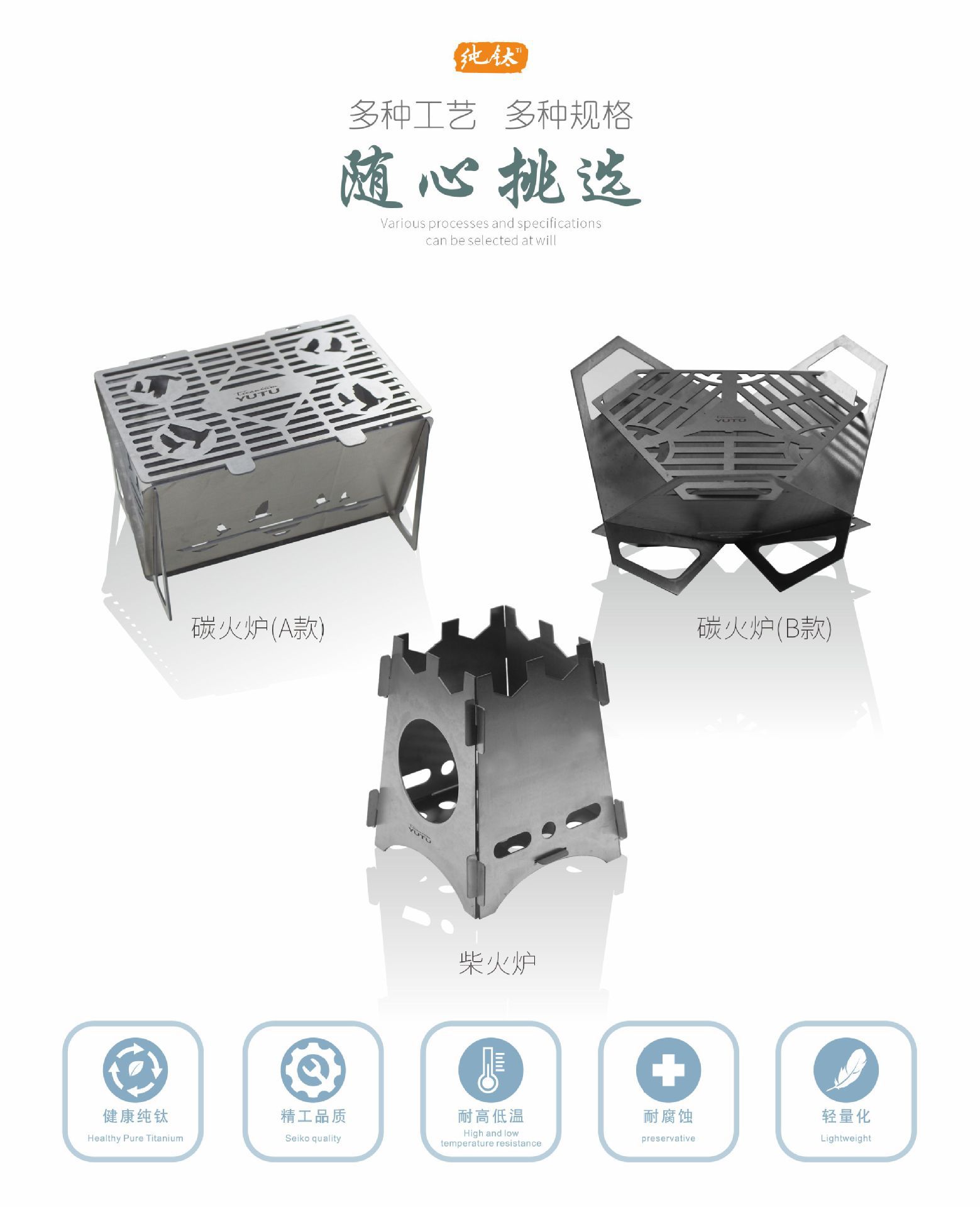 • 순수한 티타늄 카드 유형 장작 난로 (스몰 사이즈)