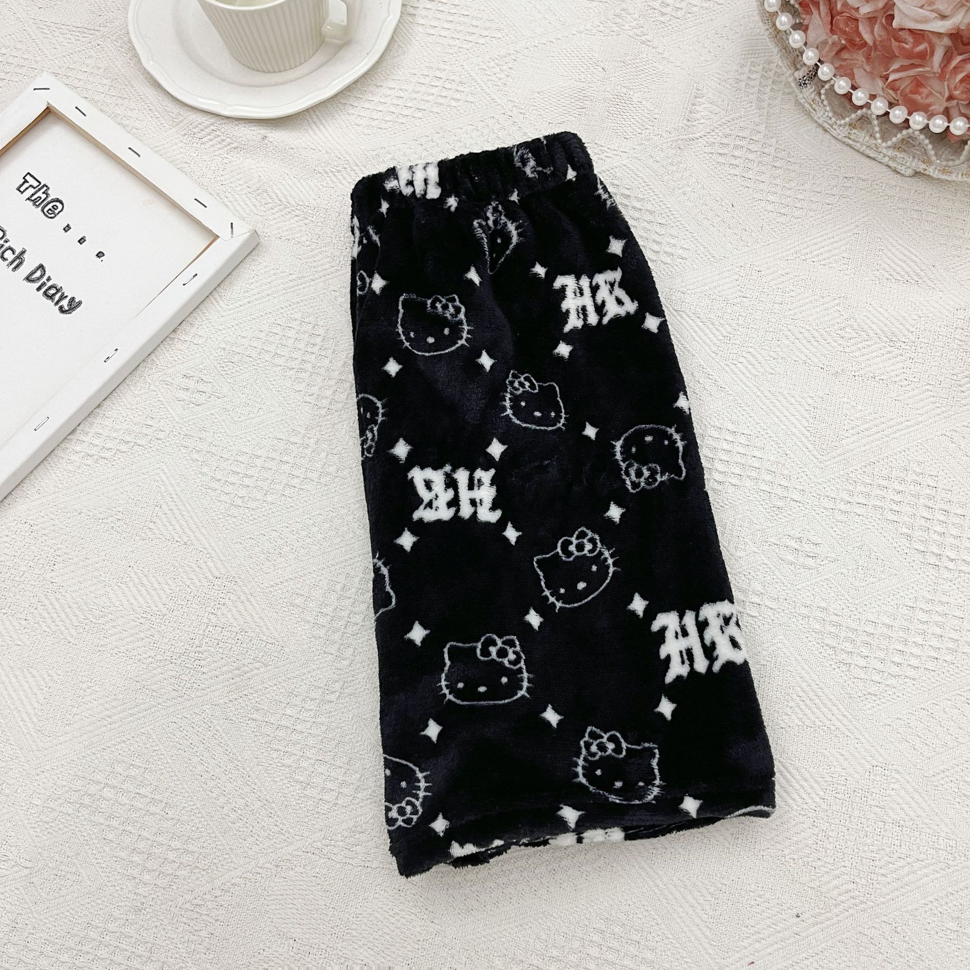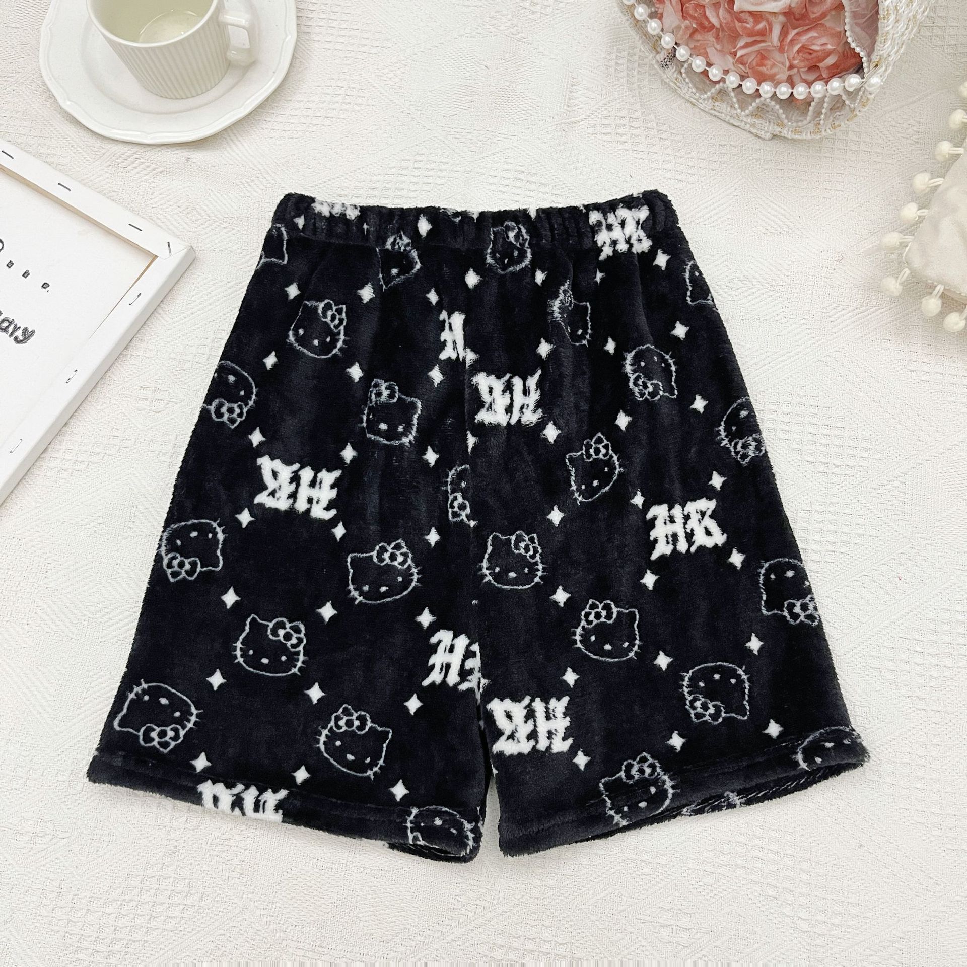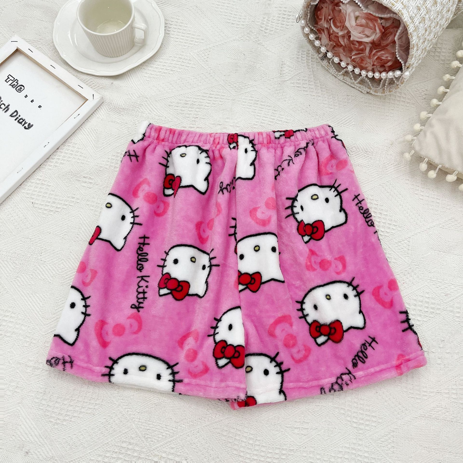 키티 잠옷 플란넬 바지 수출용 만화 캐릭터 KT 고양이 여름용 신축성 반바지 와이드 레그 섹시한 여자스토어 가기