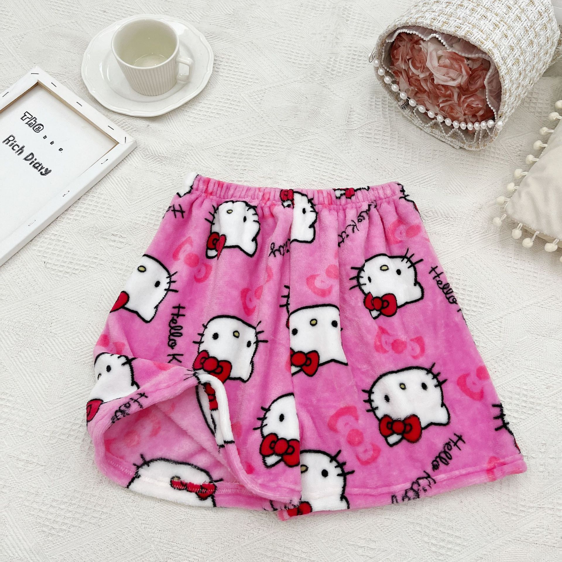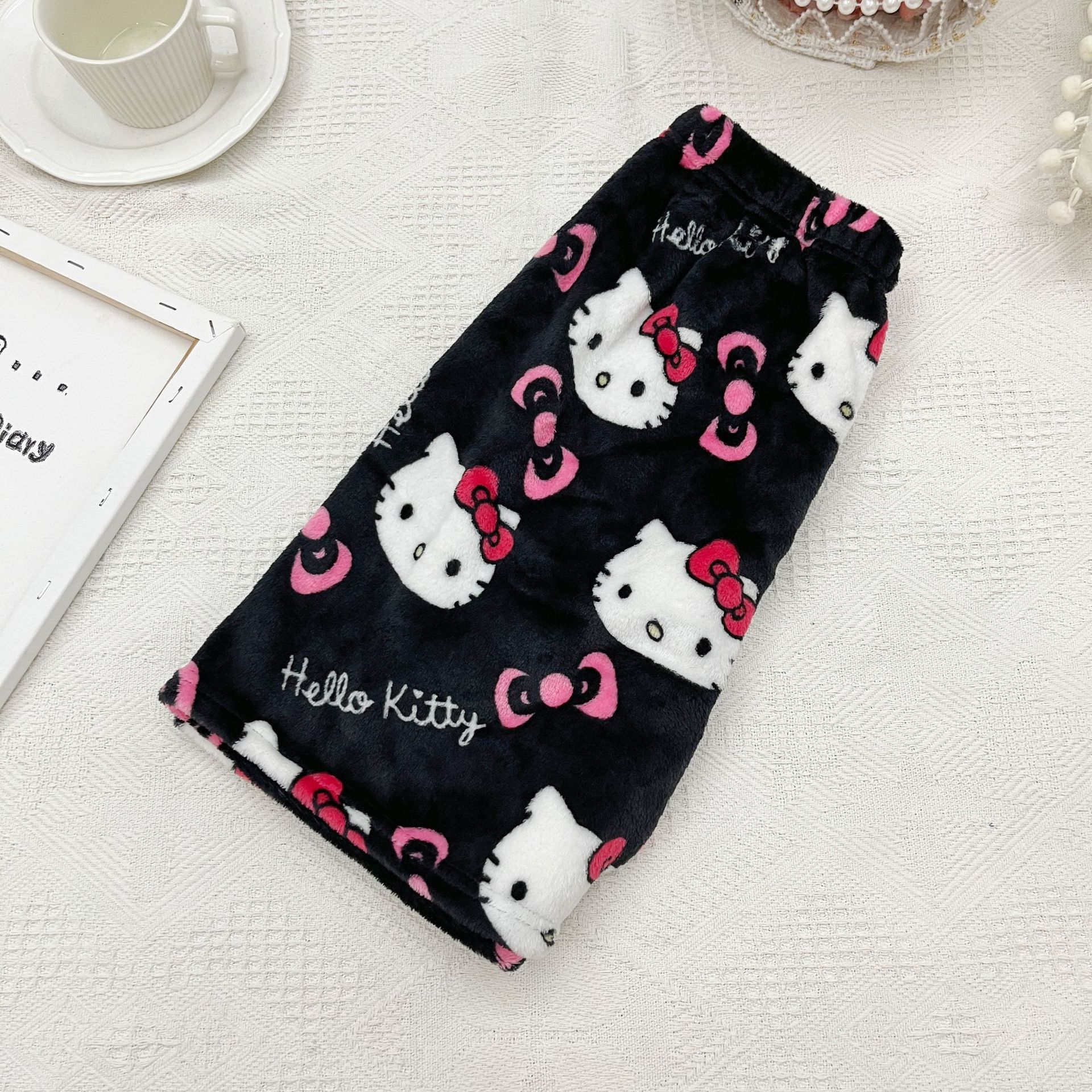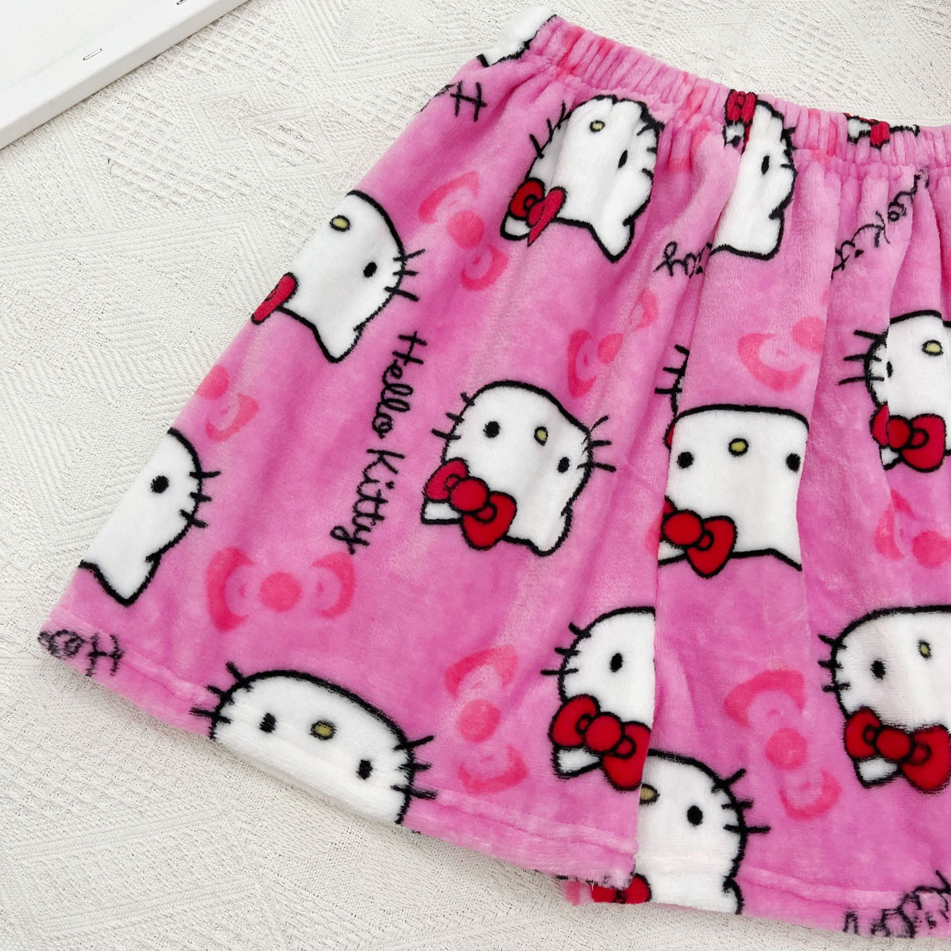 키티 잠옷 플란넬 바지 수출용 만화 캐릭터 KT 고양이 여름용 신축성 반바지 와이드 레그 섹시한 여자스토어 가기