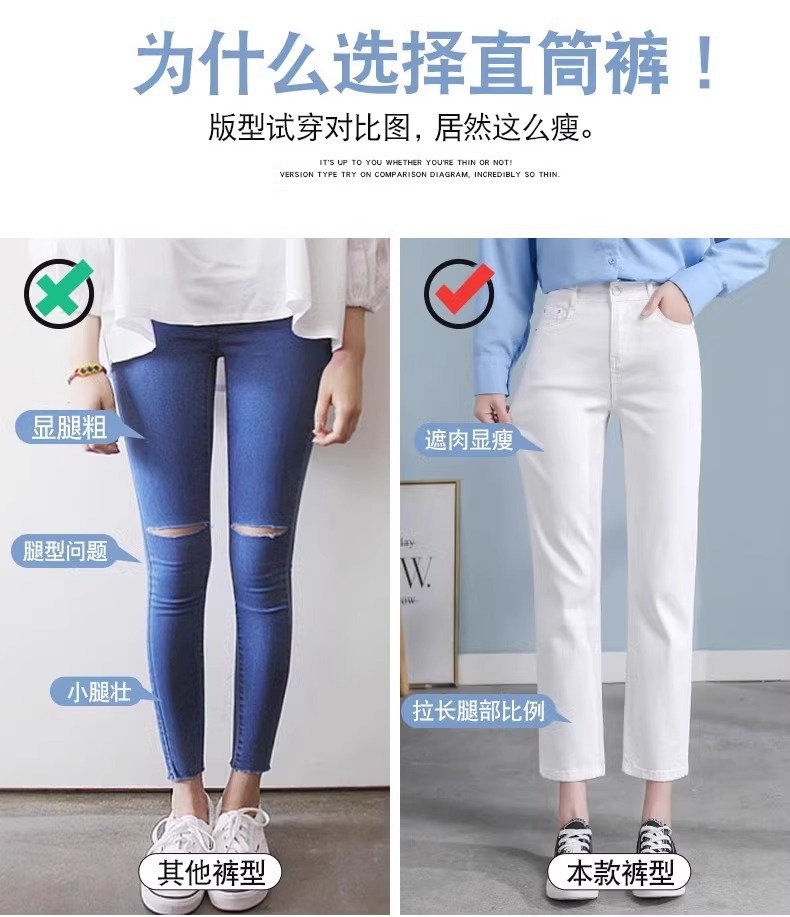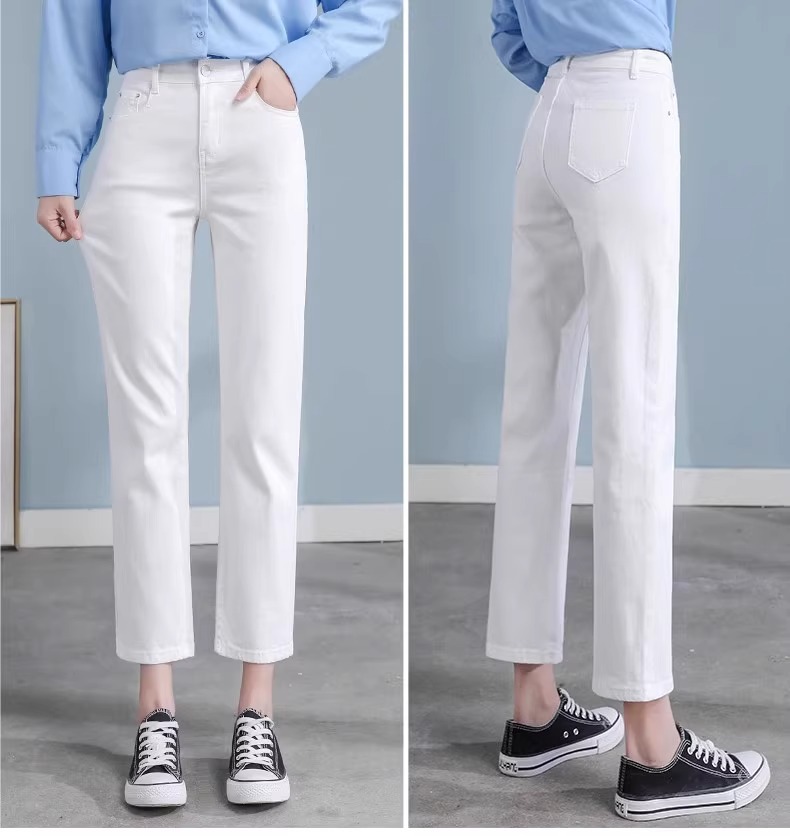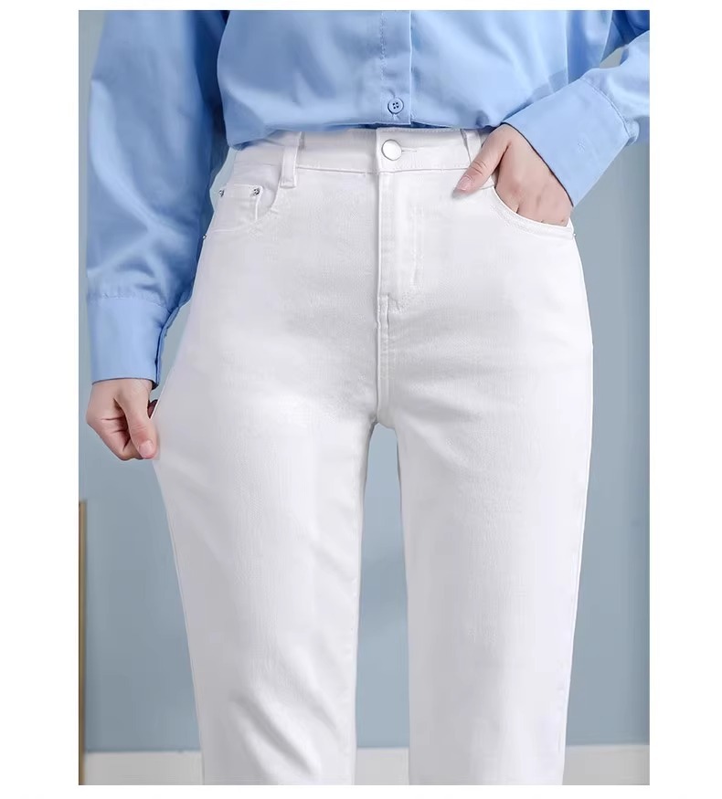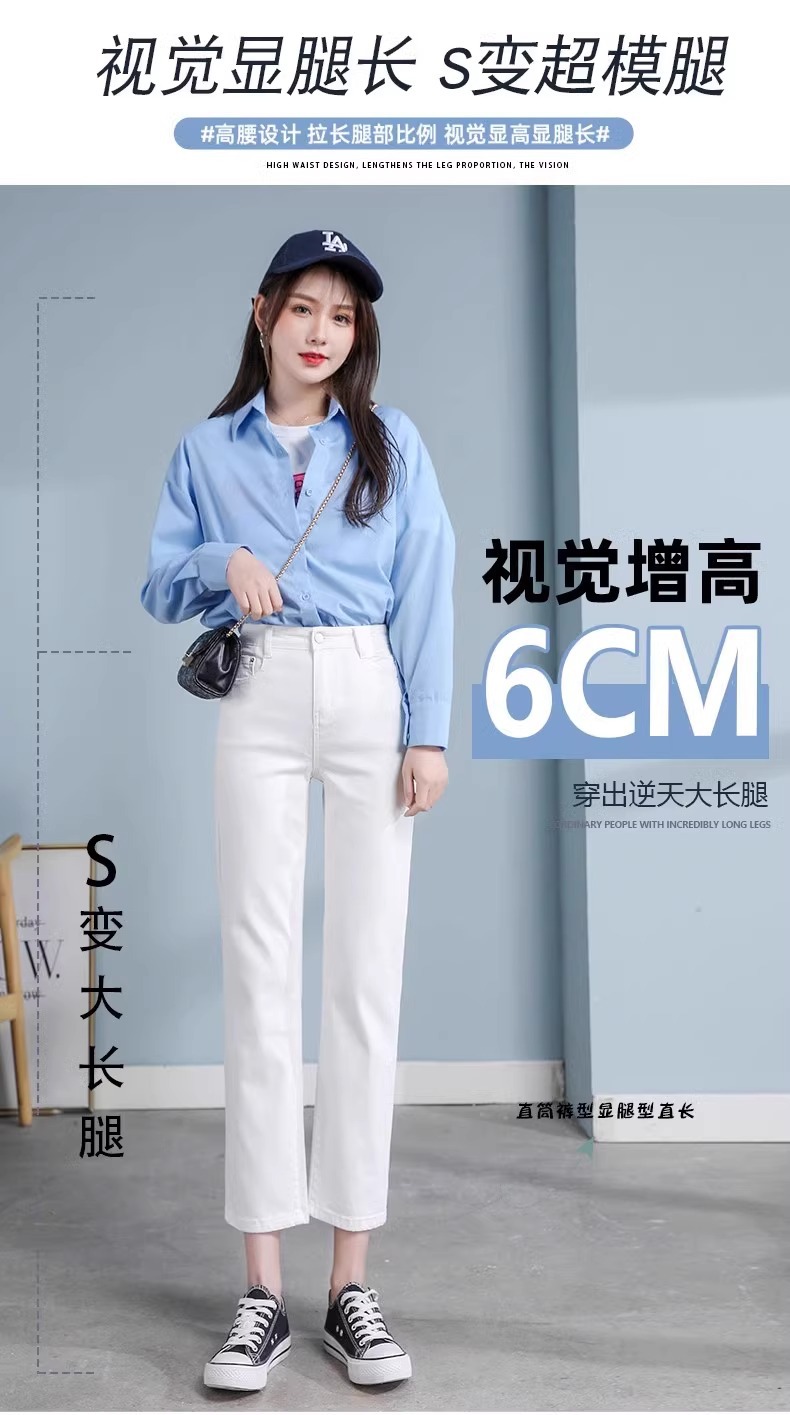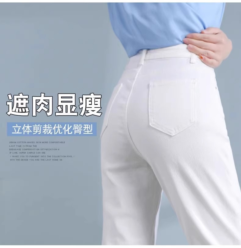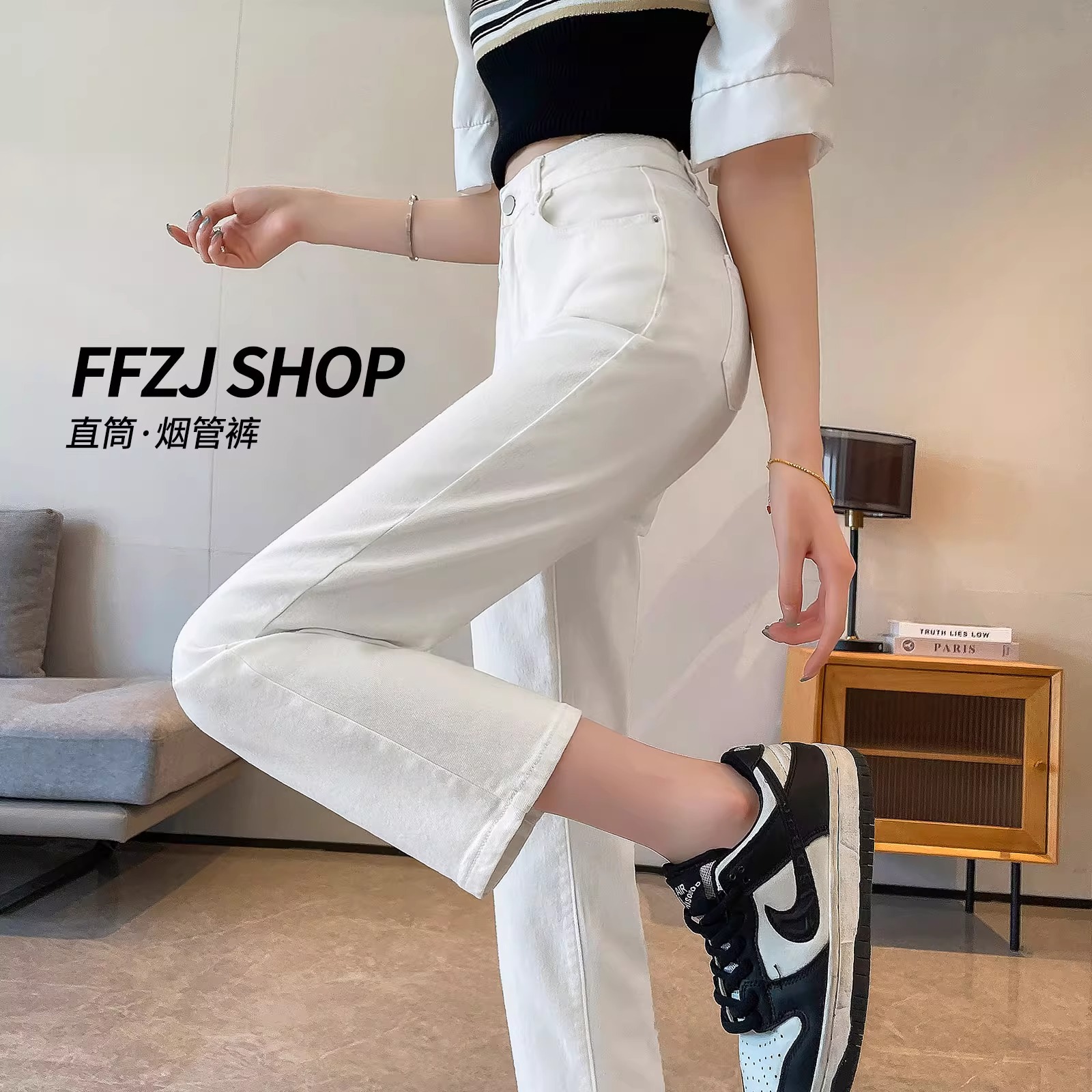 화이트 스모크 팬츠 여성용 2025 신상 봄/가을/여름 얇은 하이웨이스트 슬림핏 9부 소형 체형용 스모크 스트레이트 데님 팬츠스토어 가기