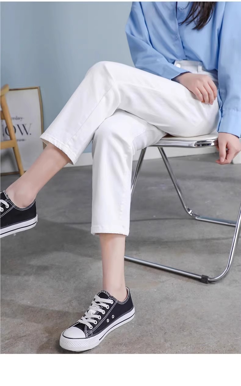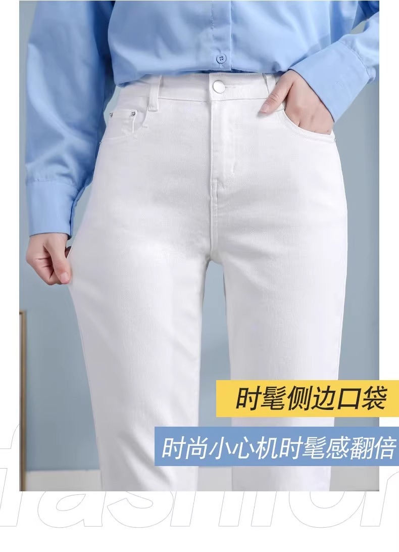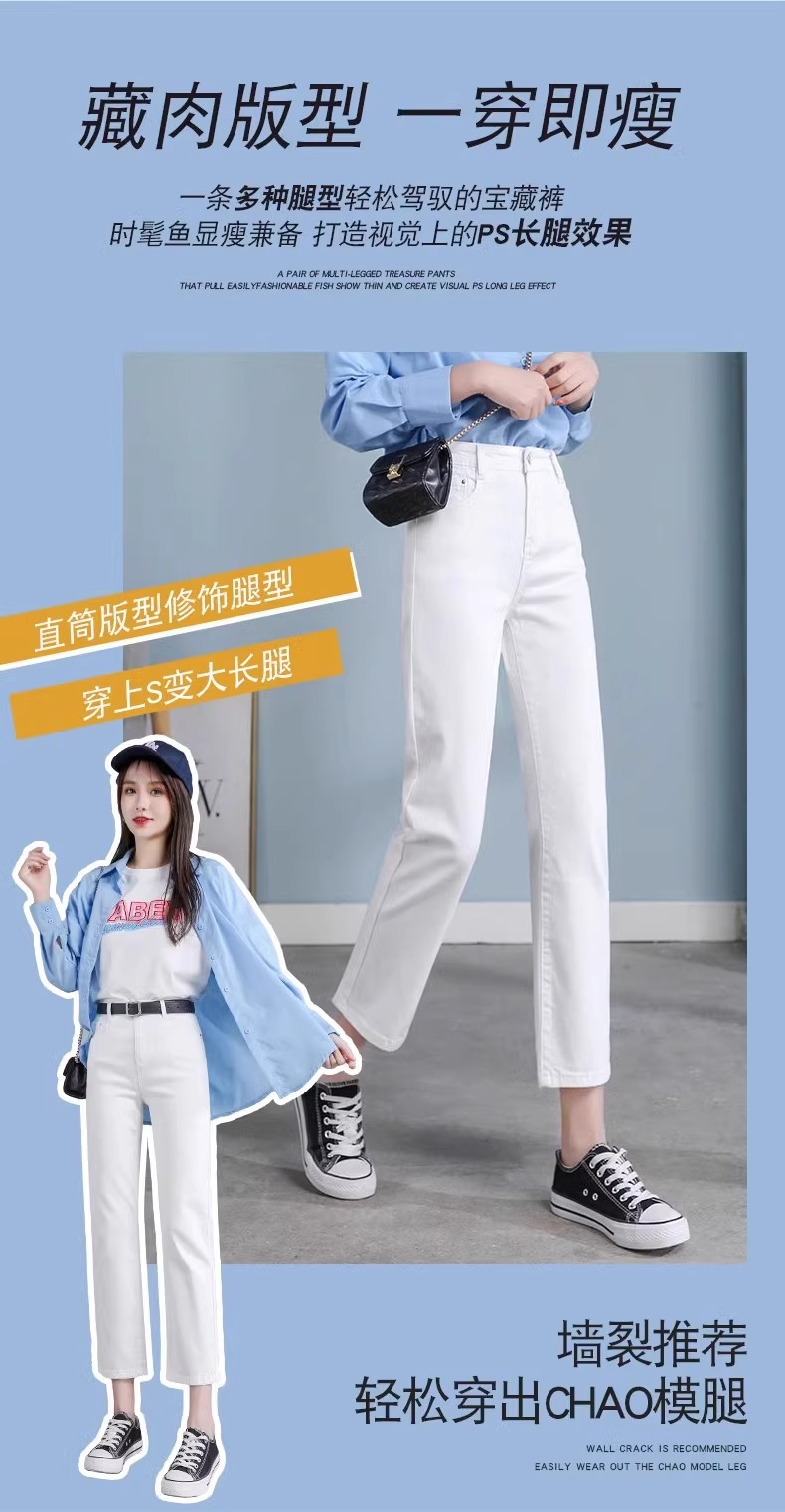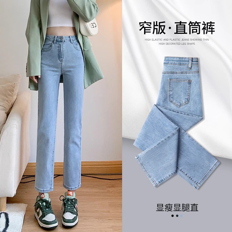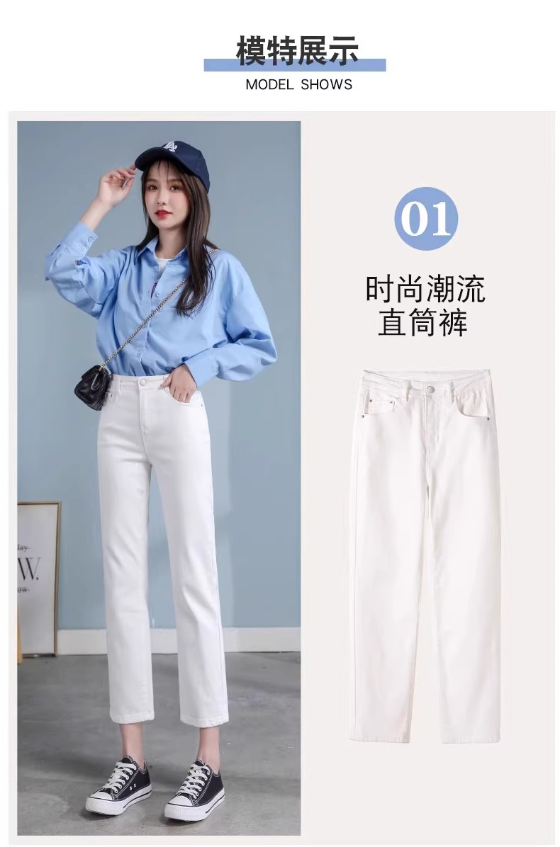 화이트 스모크 팬츠 여성용 2025 신상 봄/가을/여름 얇은 하이웨이스트 슬림핏 9부 소형 체형용 스모크 스트레이트 데님 팬츠스토어 가기