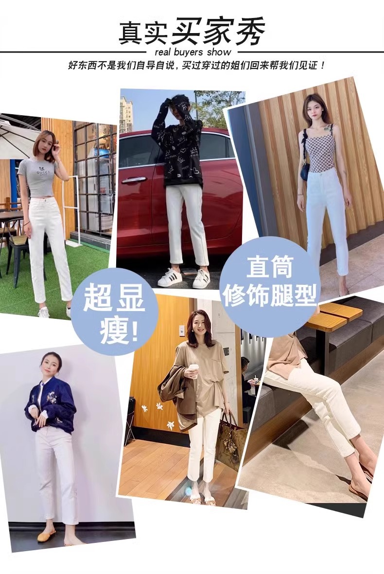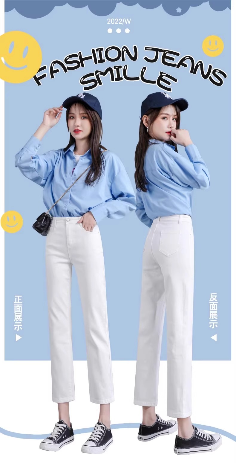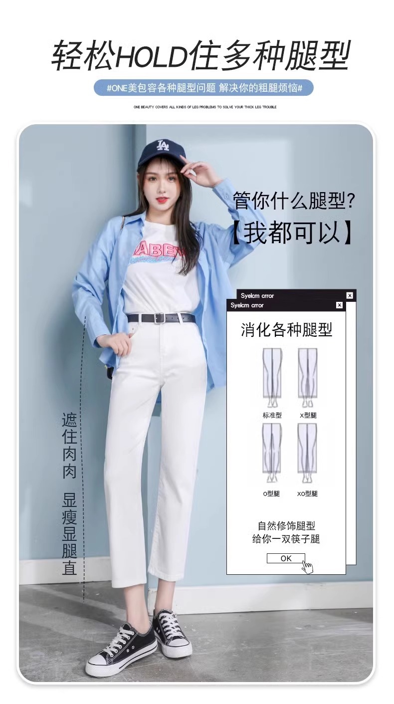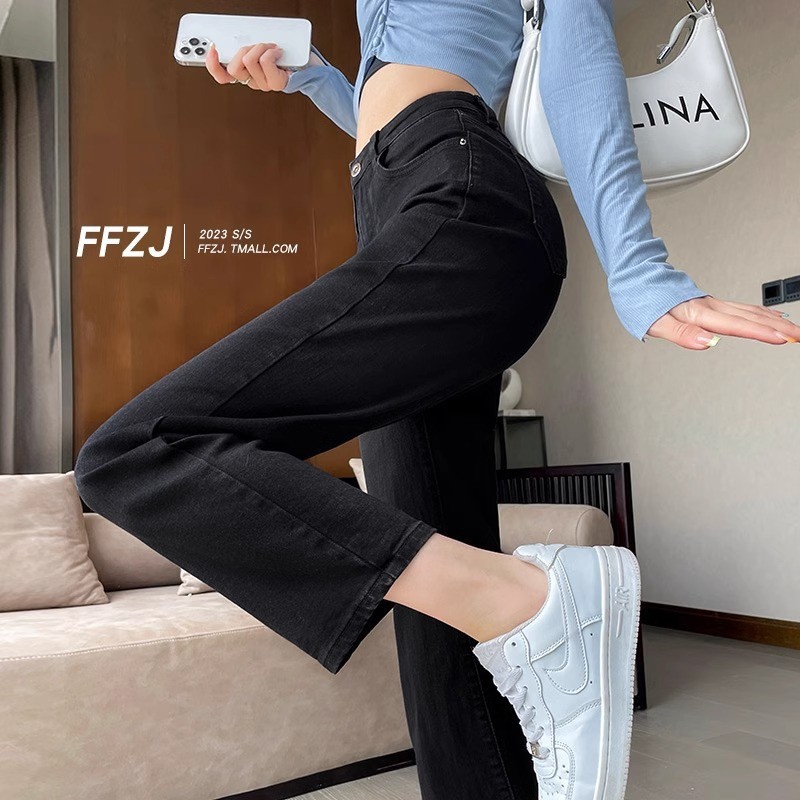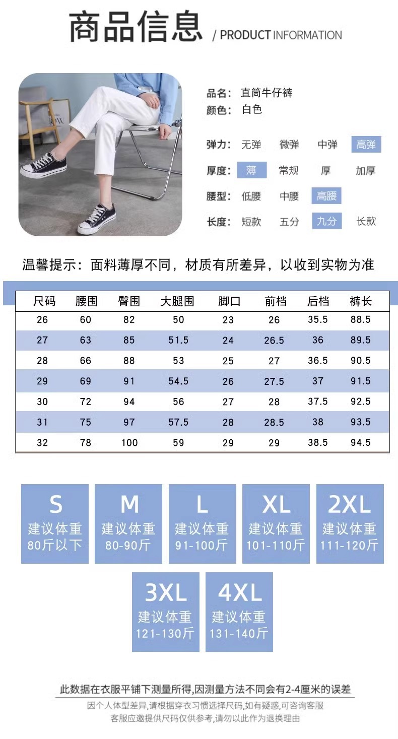 화이트 스모크 팬츠 여성용 2025 신상 봄/가을/여름 얇은 하이웨이스트 슬림핏 9부 소형 체형용 스모크 스트레이트 데님 팬츠스토어 가기