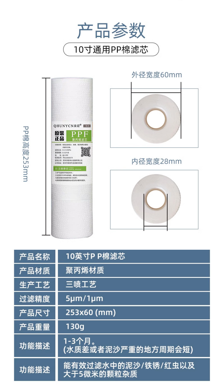 정수기 pp 면 필터 요소 8 인치 11 인치 유니버설 가정용 10 인치 11.3 인치 pp 필터 용융 필터 요소 1/5 마이크론